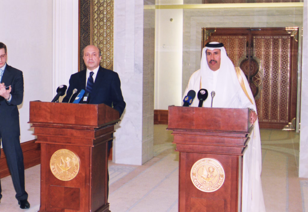 معالي النائب الأول لرئيس مجلس الوزراء وزير الخارجية الشيخ حمد بن جاسم بن جبر آل ثاني يستقبل جاك لانغ في الدوحة – 3 أبريل 2005