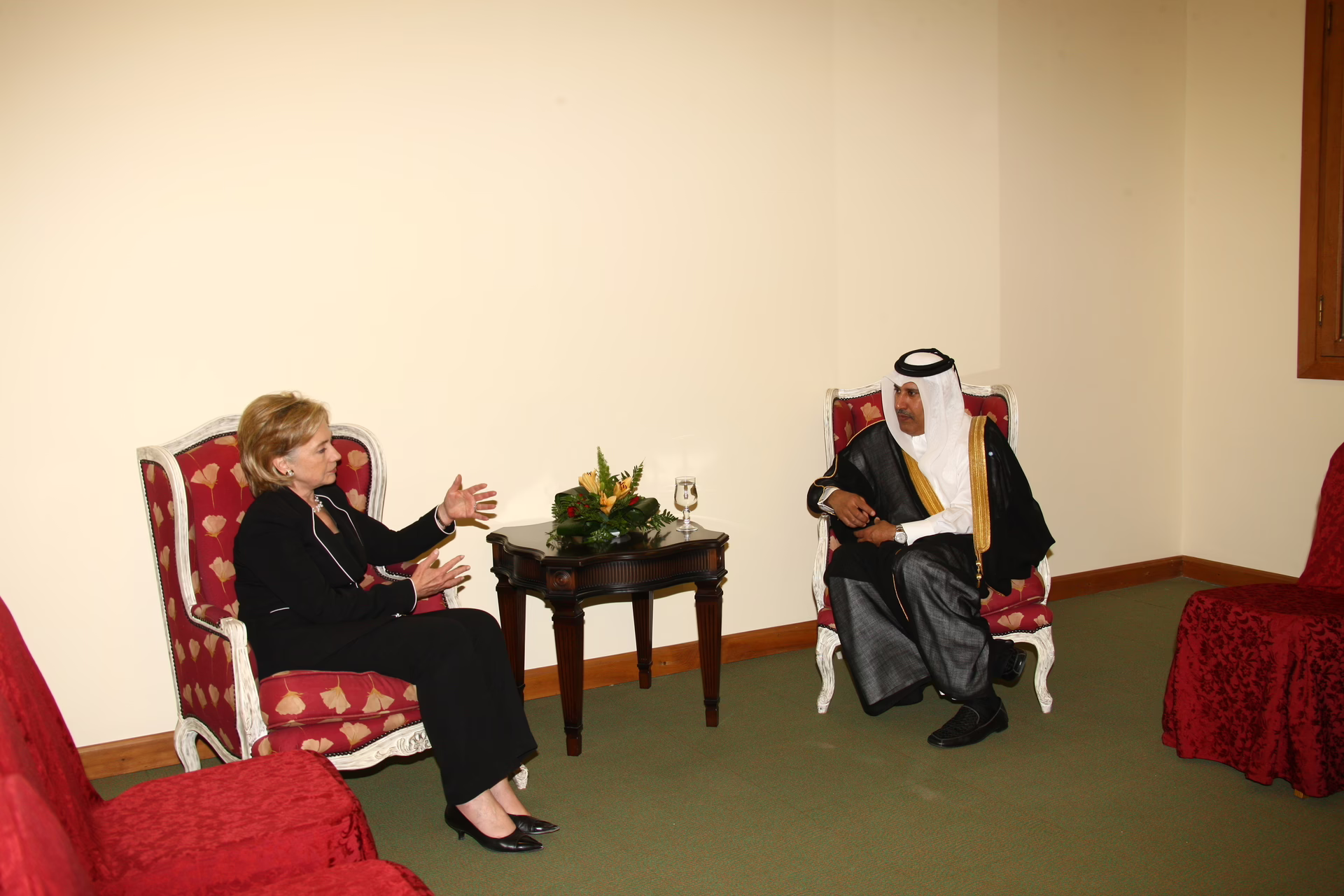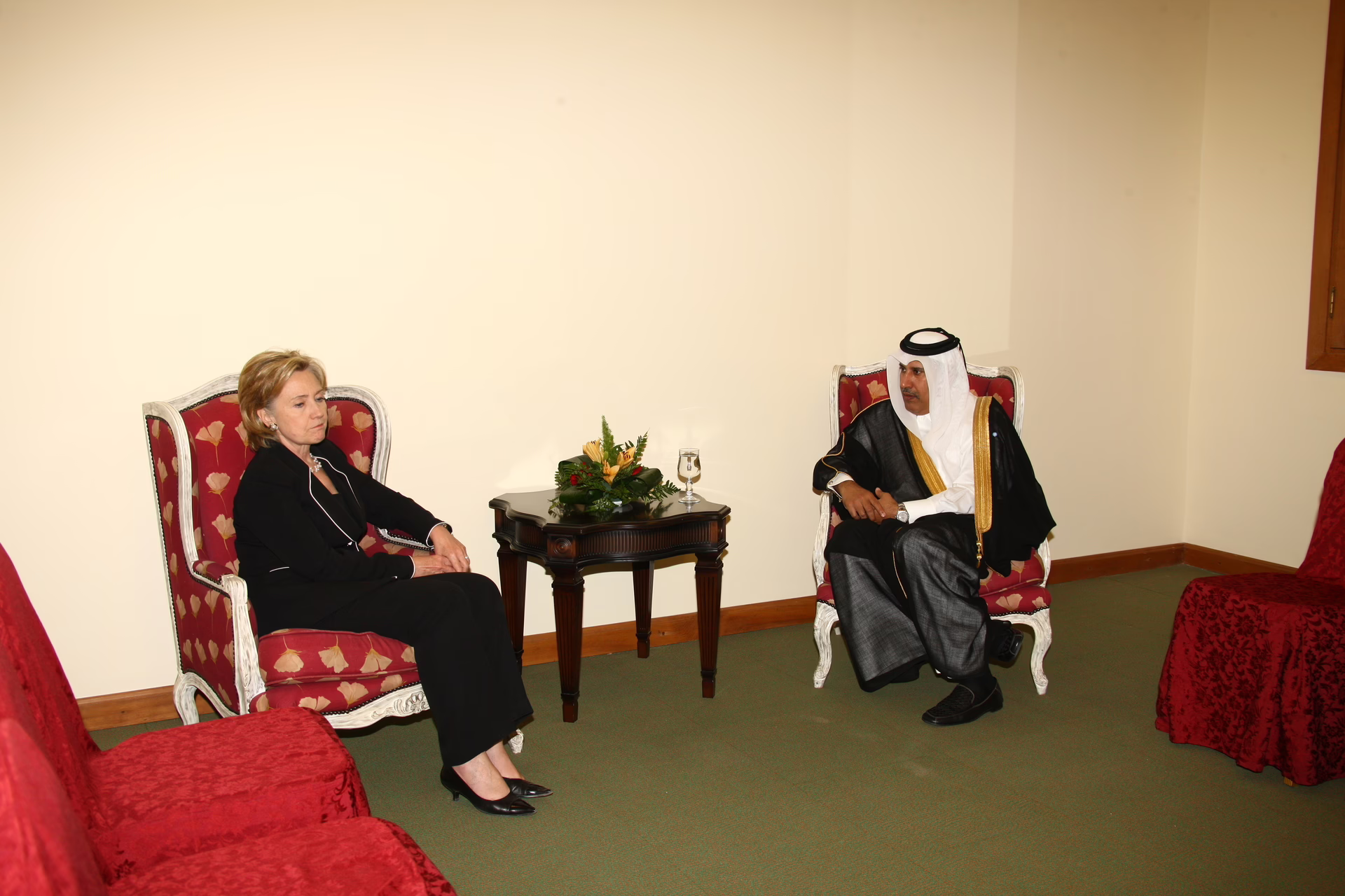 معالي رئيس مجلس الوزراء وزير الخارجية الشيخ حمد بن جاسم بن جبر آل ثاني يلتقي بمعالي وزيرة الخارجية الأمريكية هيلاري كلينتون في مدينة مراكش بتاريخ 2 نوفمبر 2009، وذلك على هامش الاجتماع الوزاري السادس لمنتدى المستقبل.