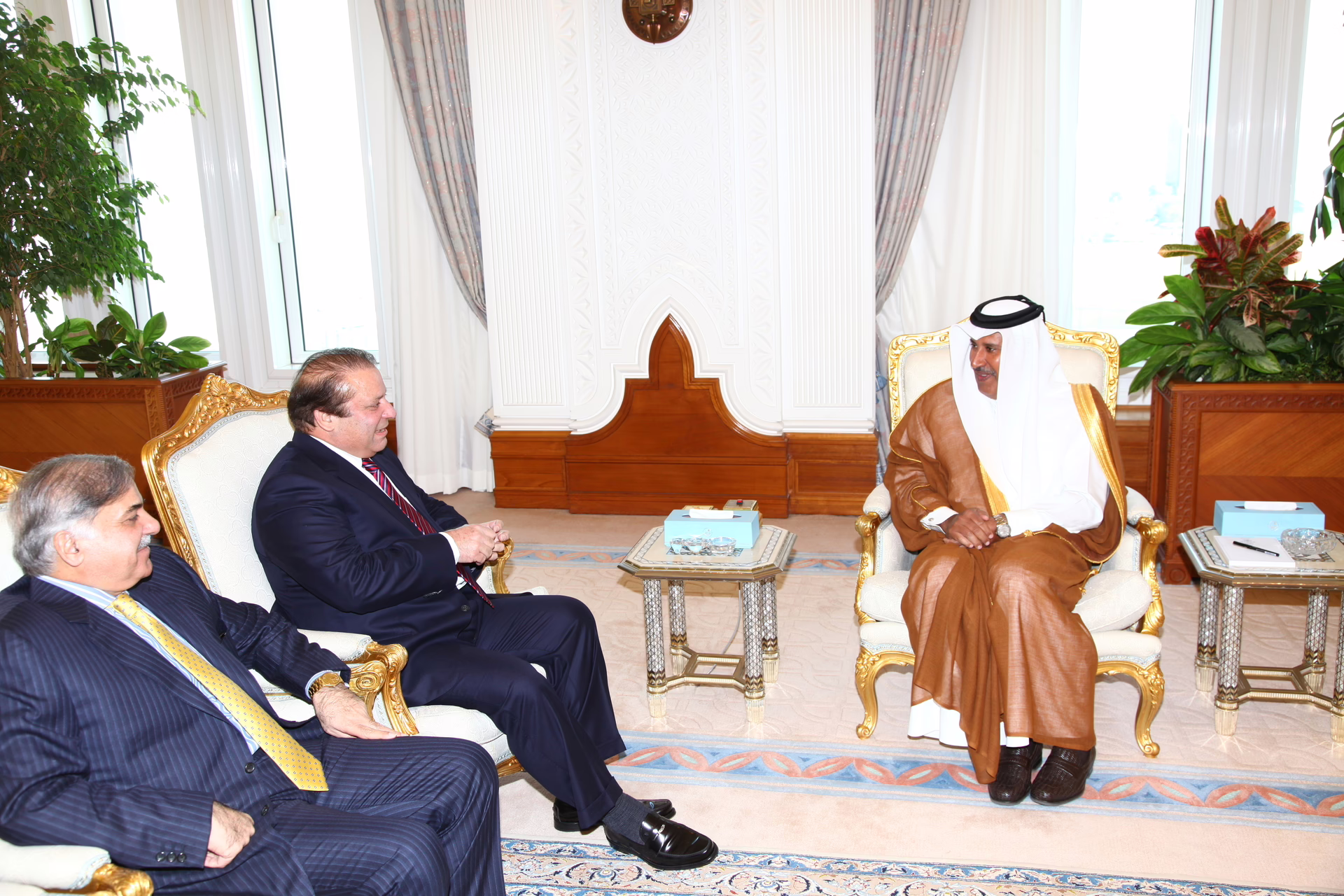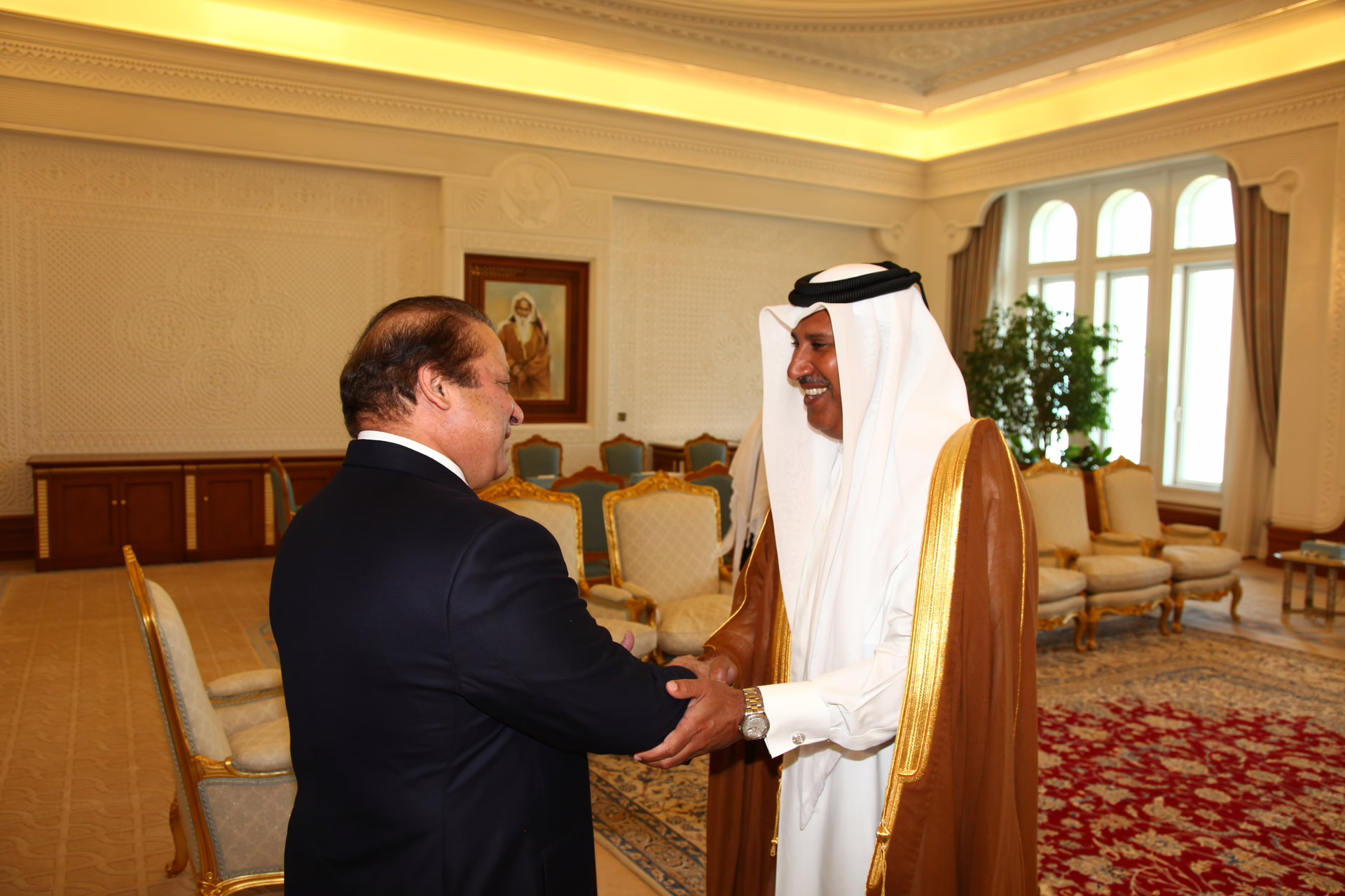 معالي رئيس مجلس الوزراء وزير الخارجية الشيخ حمد بن جاسم بن جبر آل ثاني يستقبل في الدوحة بتاريخ 10 يناير 2010 دولة رئيس وزراء باكستان السابق السيد نواز شريف.
