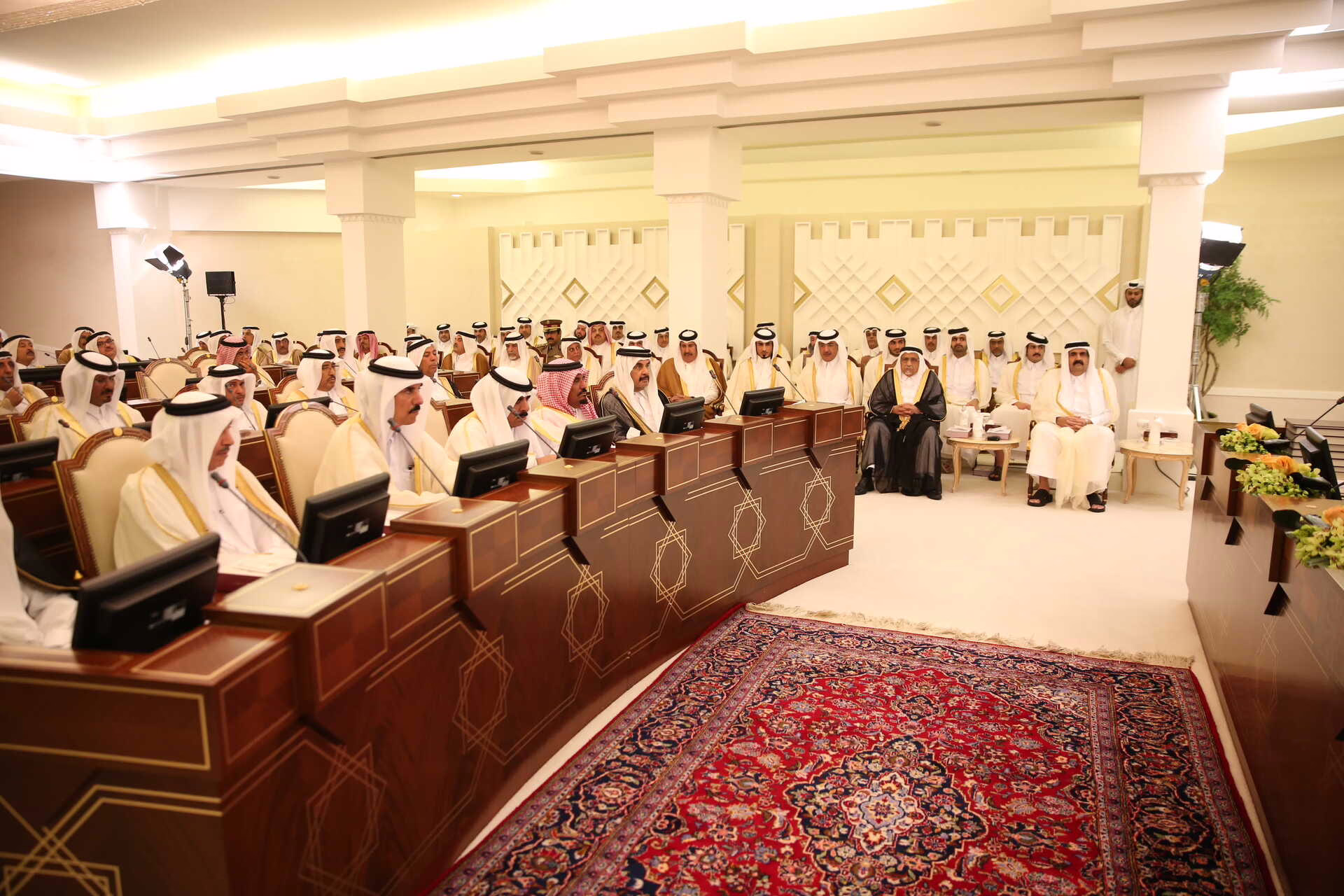 سمو الأمير الشيخ تميم بن حمد آل ثاني يفتتح في الدوحة بتاريخ 5 نوفمبر 2013 دور الانعقاد الثاني والأربعين لمجلس الشورى، وذلك بحضور سمو الأمير الوالد الشيخ حمد بن خليفة آل ثاني، ومعالي الشيخ حمد بن جاسم بن جبر آل ثاني رئيس مجلس الوزراء وزير الخارجية السابق، وسعادة الشيخ عبد الله بن خليفة آل ثاني، وسعادة الشيخ جاسم بن حمد آل ثاني، وسعادة الشيخ ثاني بن حمد بن خليفة آل ثاني، وسعادة الشيخ عبد الله بن حمد آل ثاني، وسعادة الشيخ محمد بن حمد بن خليفة آل ثاني، ومعالي أحمد بن عبد الله آل محمود، ومعالي الدكتور خالد بن محمد العطية، ومعالي عبد الله بن خليفة العطية، ومعالي عبد الله بن ناصر بن خليفة آل ثاني، وعدد من أصحاب السعادة أعضاء مجلس الشورى وكبار المسؤولين.