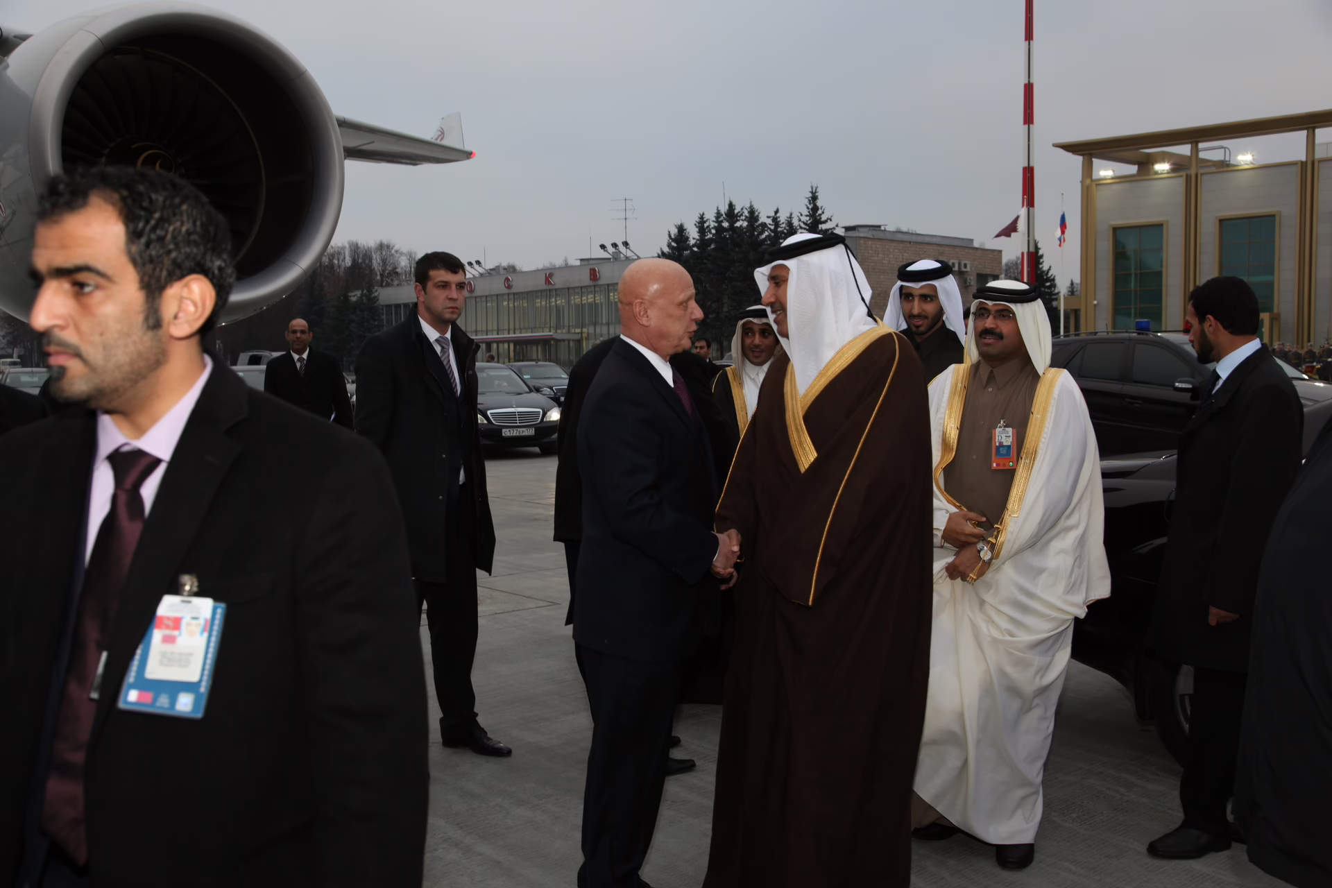 سمو الأمير الشيخ حمد بن خليفة آل ثاني يغادر موسكو بتاريخ 3 نوفمبر 2010 في ختام زيارة رسمية إلى روسيا الاتحادية، يرافقه معالي رئيس مجلس الوزراء وزير الخارجية الشيخ حمد بن جاسم بن جبر آل ثاني، حيث كان في وداع سموه نائب وزير الخارجية الروسي السيد ألكسندر سلطانوف، إلى جانب وفد رسمي رفيع المستوى من كبار المسؤولين.