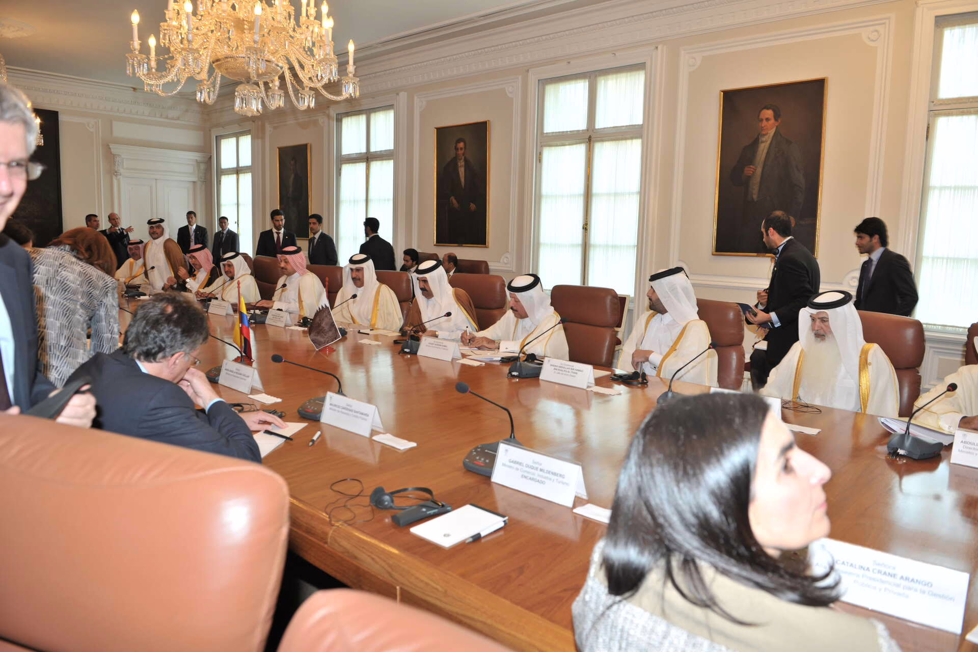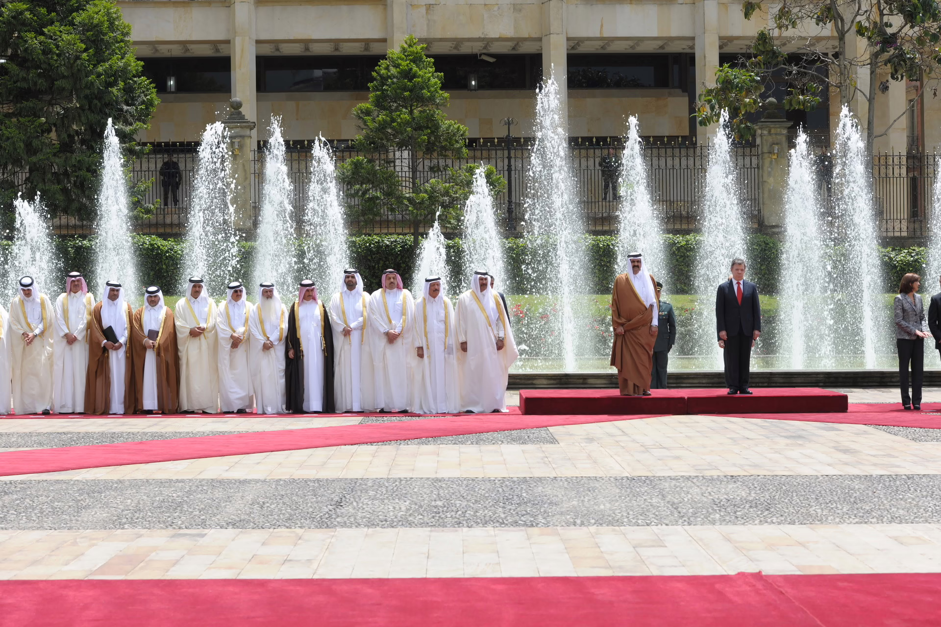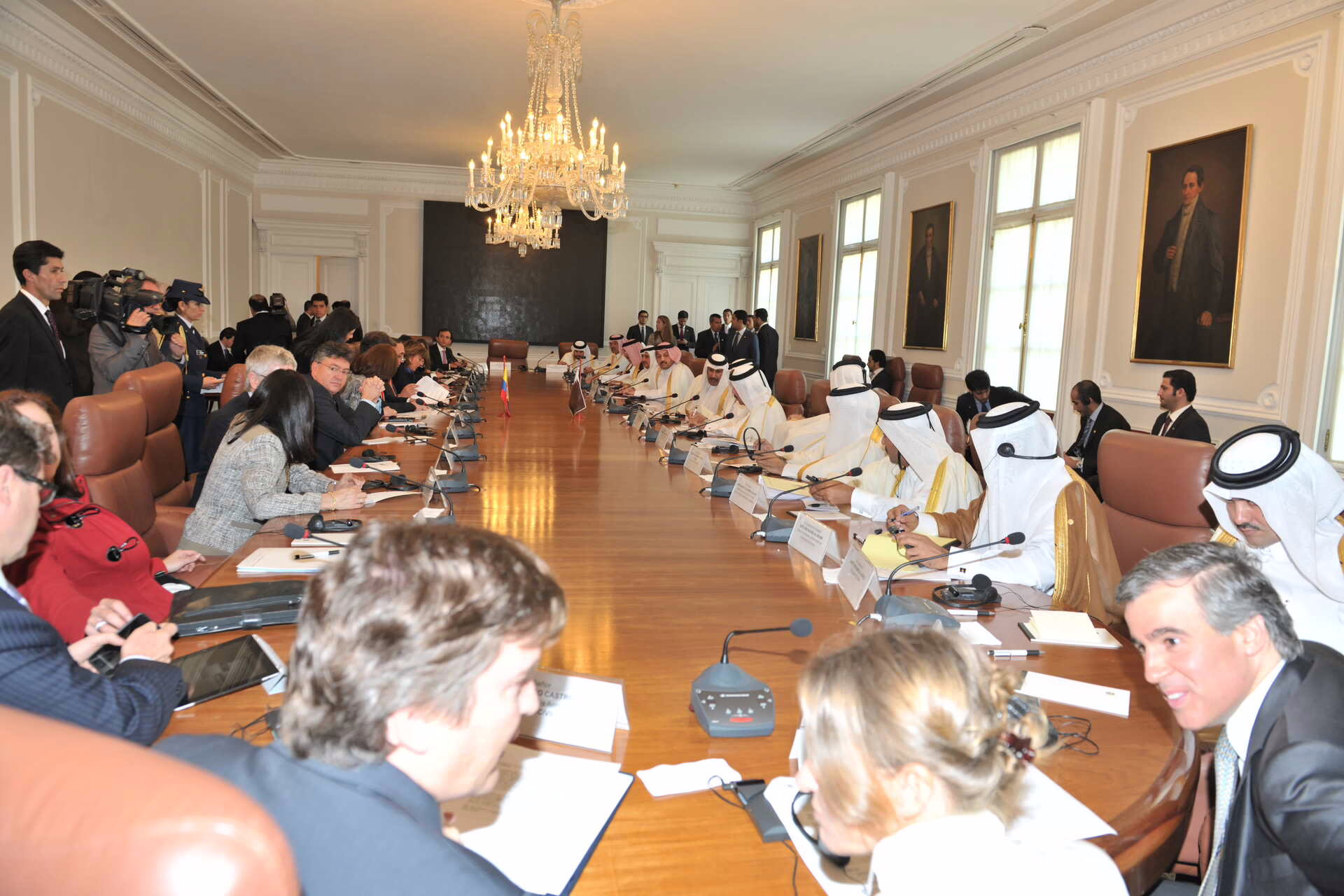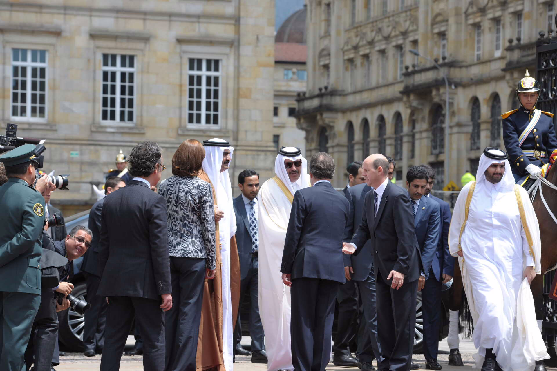سمو الأمير الشيخ حمد بن خليفة آل ثاني يلتقي في بوغوتا بتاريخ 15 فبراير 2013 فخامة رئيس جمهورية كولومبيا السيد خوان مانويل سانتوس، حيث جرى استعراض علاقات التعاون بين البلدين وسبل تعزيزها، كما شهد الجانبان توقيع عدد من الاتفاقيات ومذكرات التفاهم بين دولة قطر وجمهورية كولومبيا، وذلك بحضور معالي رئيس مجلس الوزراء وزير الخارجية الشيخ حمد بن جاسم بن جبر آل ثاني، ومعالي ماريا أنجيلا هولغوين وزيرة خارجية جمهورية كولومبيا، وسعادة الشيخ عبد الله بن حمد آل ثاني، وعدد من كبار المسؤولين.