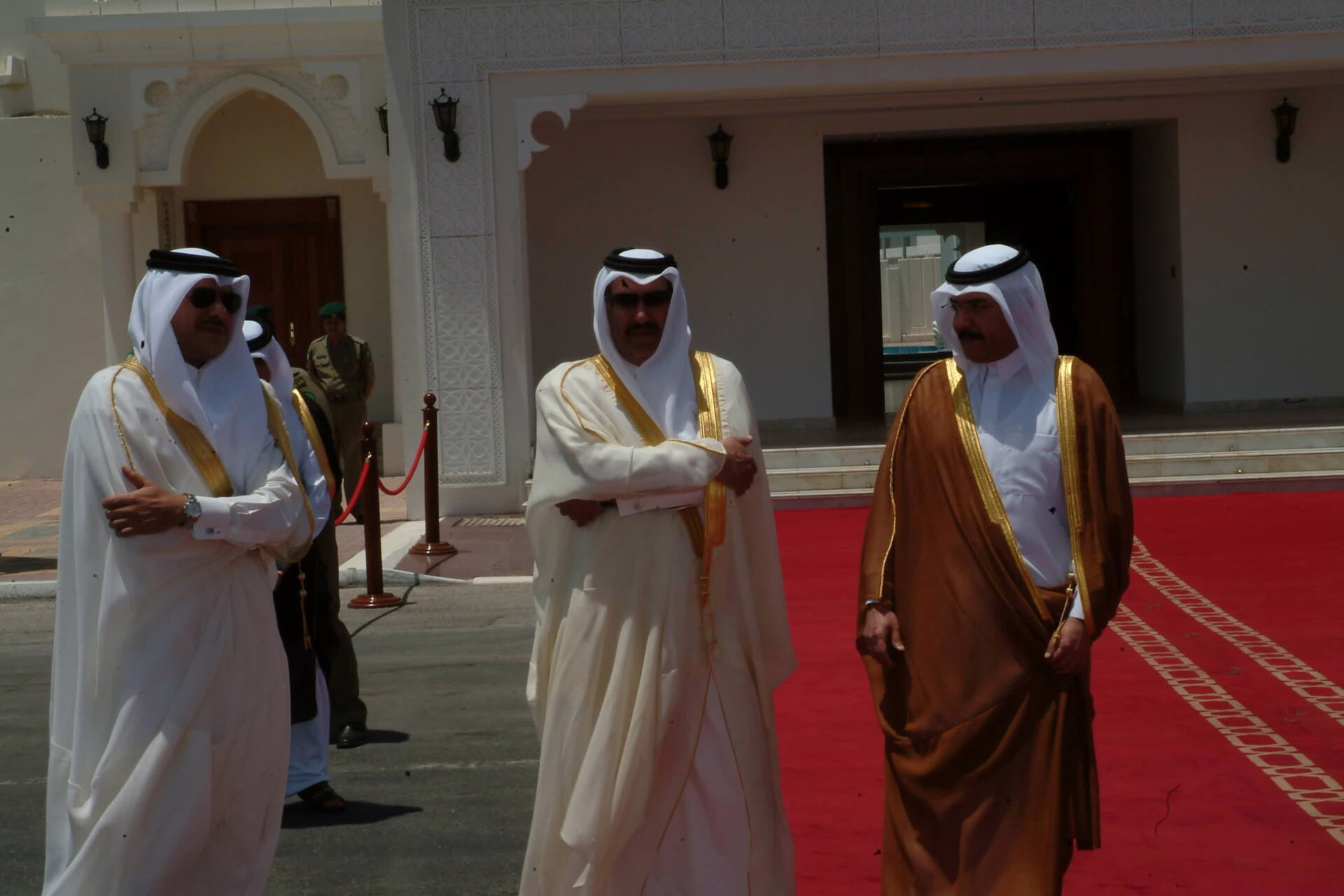 سمو الأمير الشيخ حمد بن خليفة آل ثاني يودع في الدوحة بتاريخ 7 مايو 2005 جلالة السلطان قابوس بن سعيد آل سعيد سلطان عُمان لدى مغادرته البلاد، بحضور سمو ولي العهد الشيخ تميم بن حمد آل ثاني، ومعالي رئيس مجلس الوزراء الشيخ عبد الله بن خليفة آل ثاني، ومعالي النائب الأول لرئيس مجلس الوزراء وزير الخارجية الشيخ حمد بن جاسم بن جبر آل ثاني.