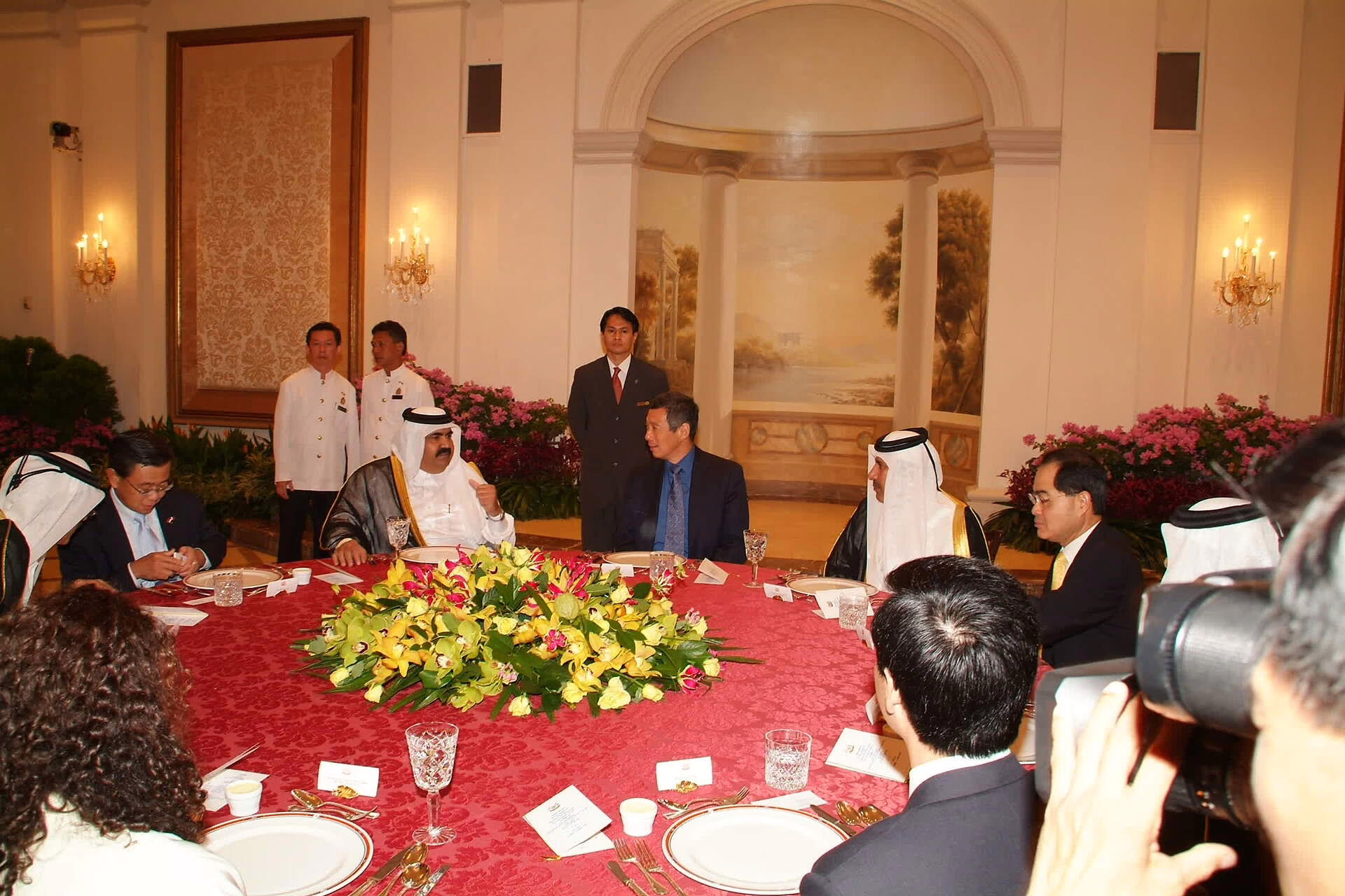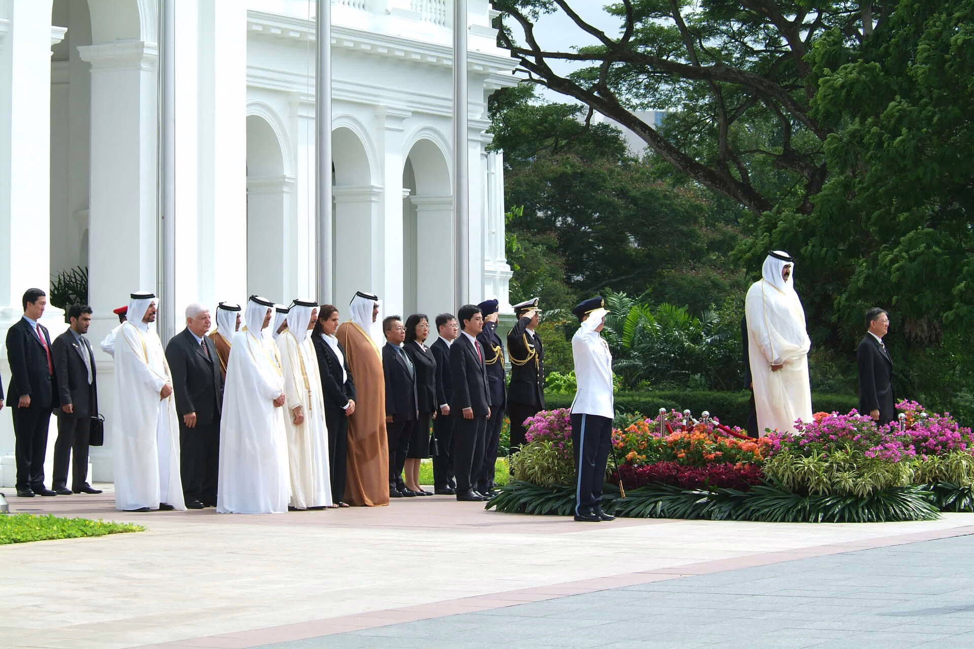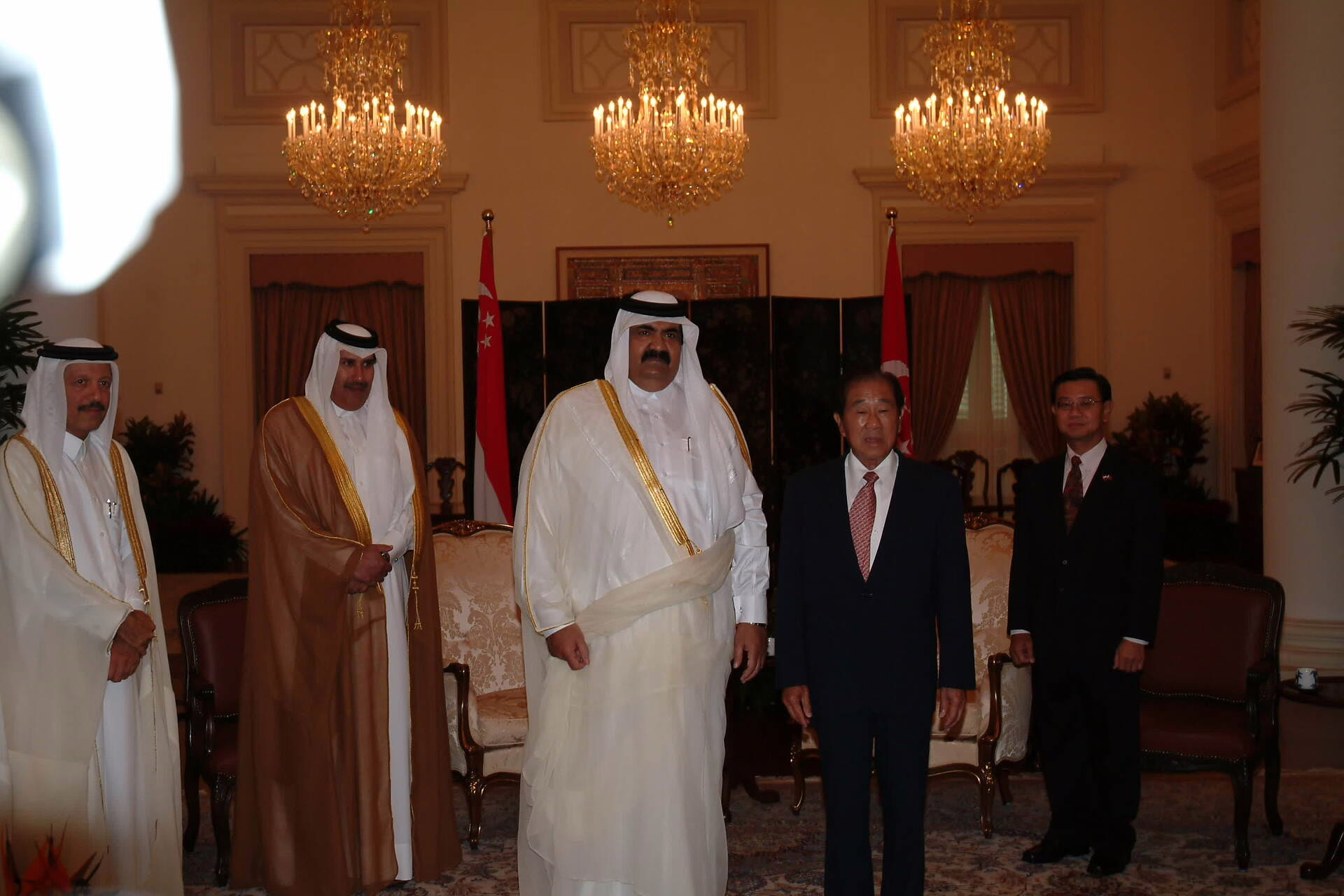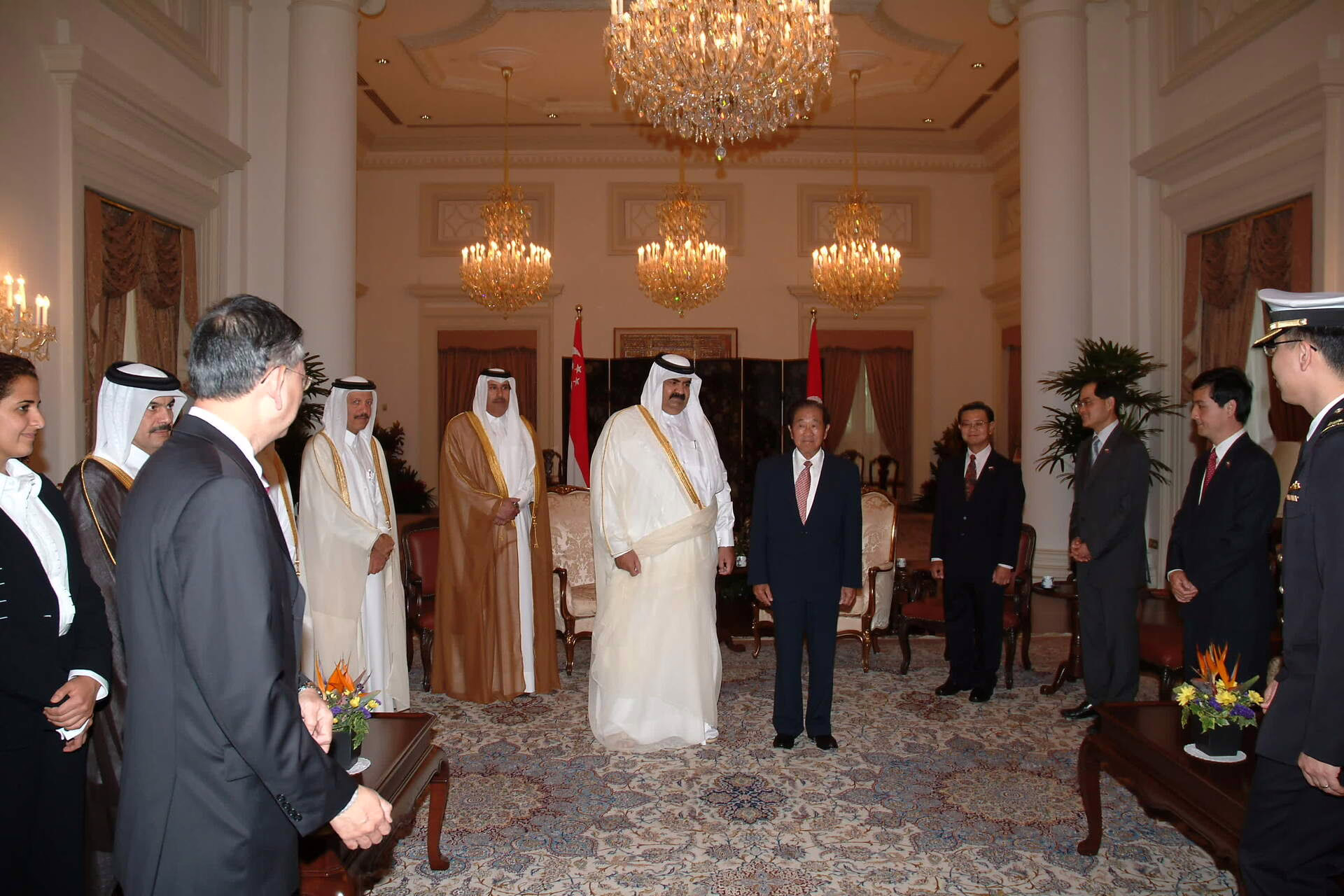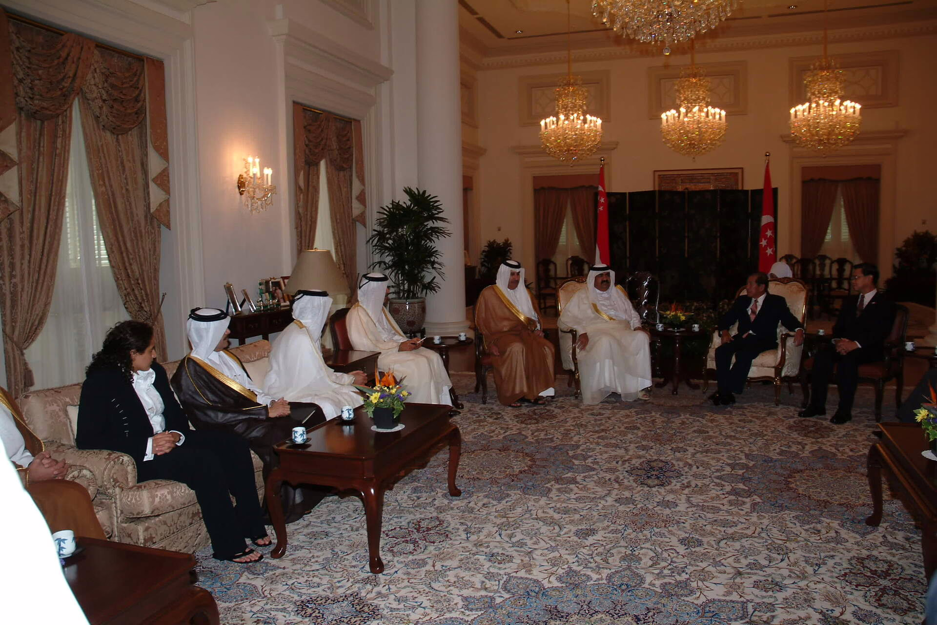 سمو الأمير الشيخ حمد بن خليفة آل ثاني يصل إلى سنغافورة بتاريخ 10 يونيو 2005 في زيارة رسمية، يرافقه معالي النائب الأول لرئيس مجلس الوزراء وزير الخارجية الشيخ حمد بن جاسم بن جبر آل ثاني، والشيخة المياسة بنت حمد بن خليفة آل ثاني، وعدد من كبار المسؤولين. وكان في استقبال سموه السيد لي هسين لونغ رئيس وزراء جمهورية سنغافورة، والسيد سيركي بون الرئيس السنغافوري بالإنابة، كما حضر الاستقبال سعادة يوسف خليفة السادة سفير دولة قطر لدى سنغافورة.