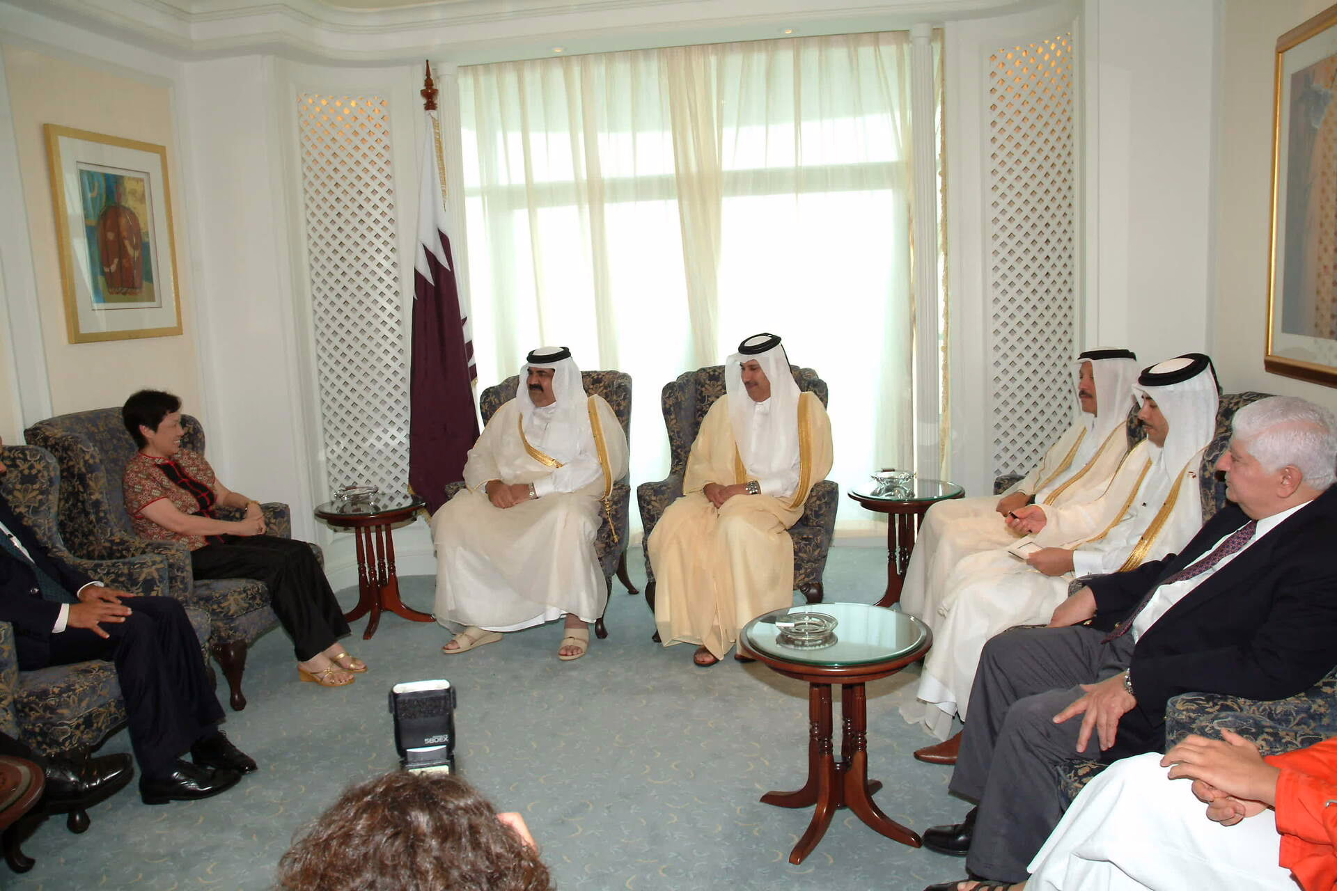 سمو الأمير الشيخ حمد بن خليفة آل ثاني يستقبل في مقر إقامته في سنغافورة بتاريخ 10 يونيو 2005 السيدة هو تشينغ المديرة التنفيذية لمجموعة تماسك المحدودة، بحضور معالي النائب الأول لرئيس مجلس الوزراء وزير الخارجية الشيخ حمد بن جاسم بن جبر آل ثاني، وعدد من كبار المسؤولين.