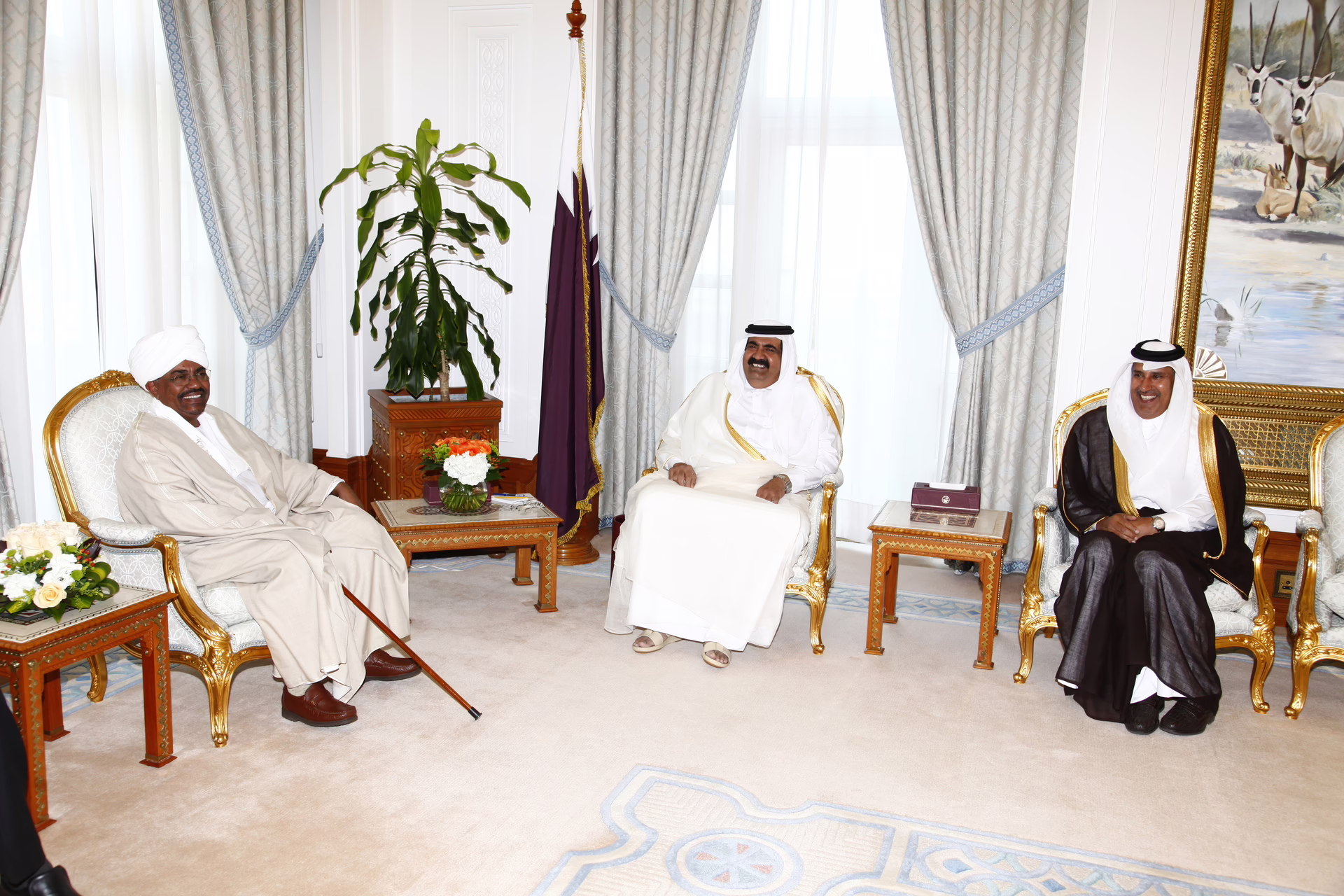 سمو الأمير الشيخ حمد بن خليفة آل ثاني يستقبل في الدوحة بتاريخ 3 فبراير 2010 فخامة الرئيس السوداني عمر حسن البشير، بحضور معالي رئيس مجلس الوزراء وزير الخارجية الشيخ حمد بن جاسم بن جبر آل ثاني.