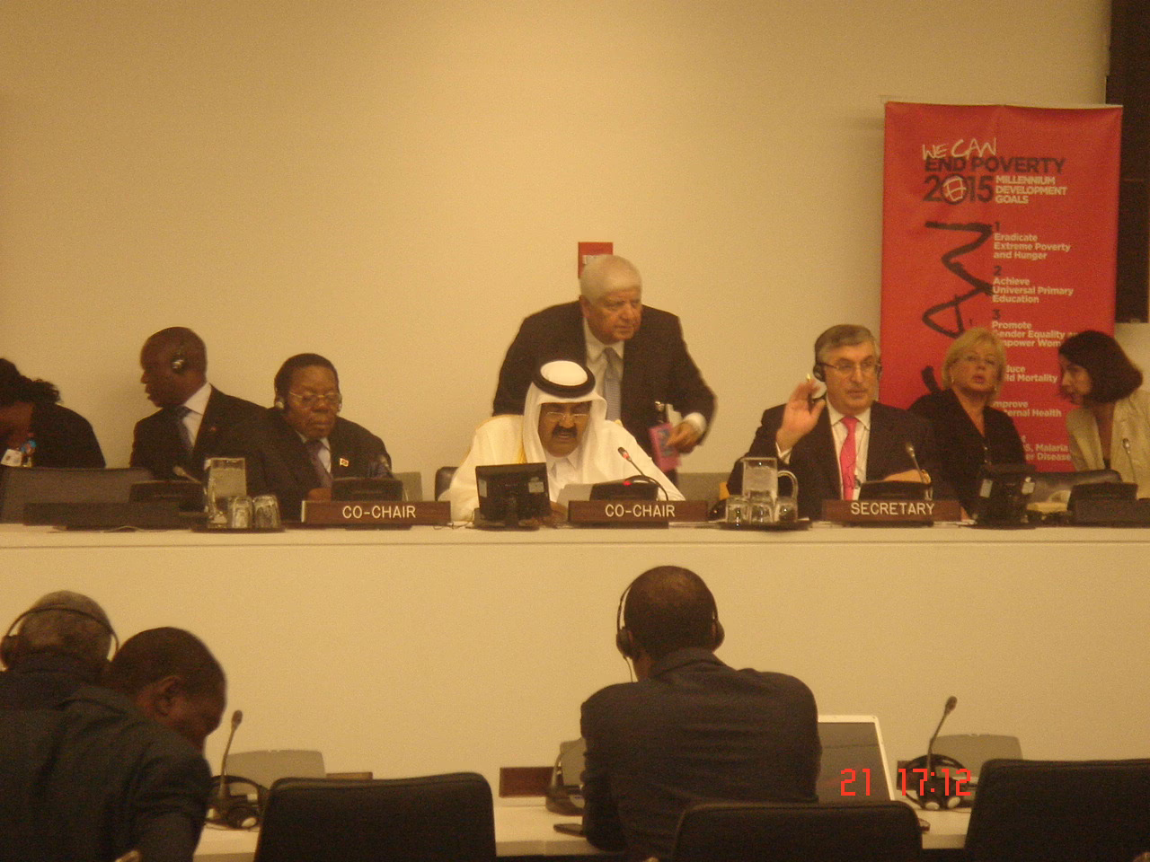 سمو الأمير الشيخ حمد بن خليفة آل ثاني يشارك بتاريخ 21 سبتمبر 2010 في نيويورك في اجتماع الأمم المتحدة حول الأهداف الإنمائية للألفية، بحضور معالي رئيس مجلس الوزراء وزير الخارجية الشيخ حمد بن جاسم بن جبر آل ثاني، وعدد من كبار المسؤولين من بينهم سعادة الشيخة هند بنت حمد آل ثاني، وعدد من كبار المسؤولين.