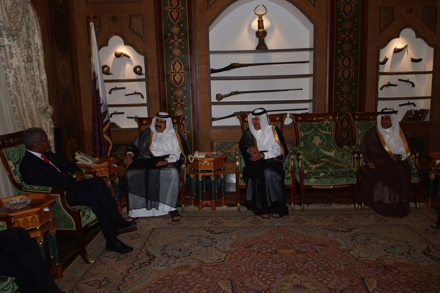 سمو الأمير الشيخ حمد بن خليفة آل ثاني يستقبل الأمين العام للأمم المتحدة كوفي عنان في الدوحة بتاريخ 3 سبتمبر 2006، وذلك بحضور معالي النائب الأول لرئيس مجلس الوزراء وزير الخارجية الشيخ حمد بن جاسم بن جبر آل ثاني، وعدد من كبار المسؤولين القطريين.