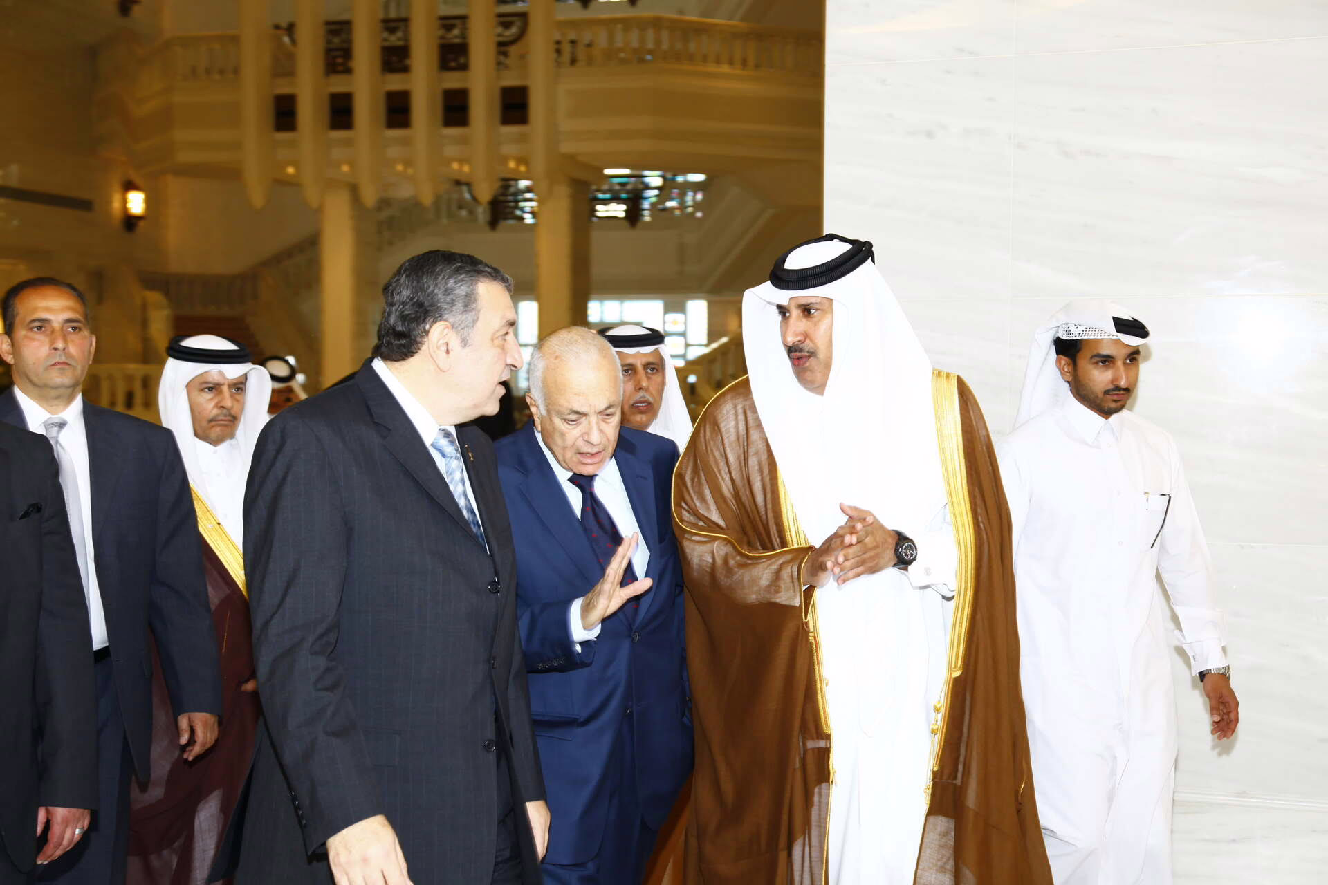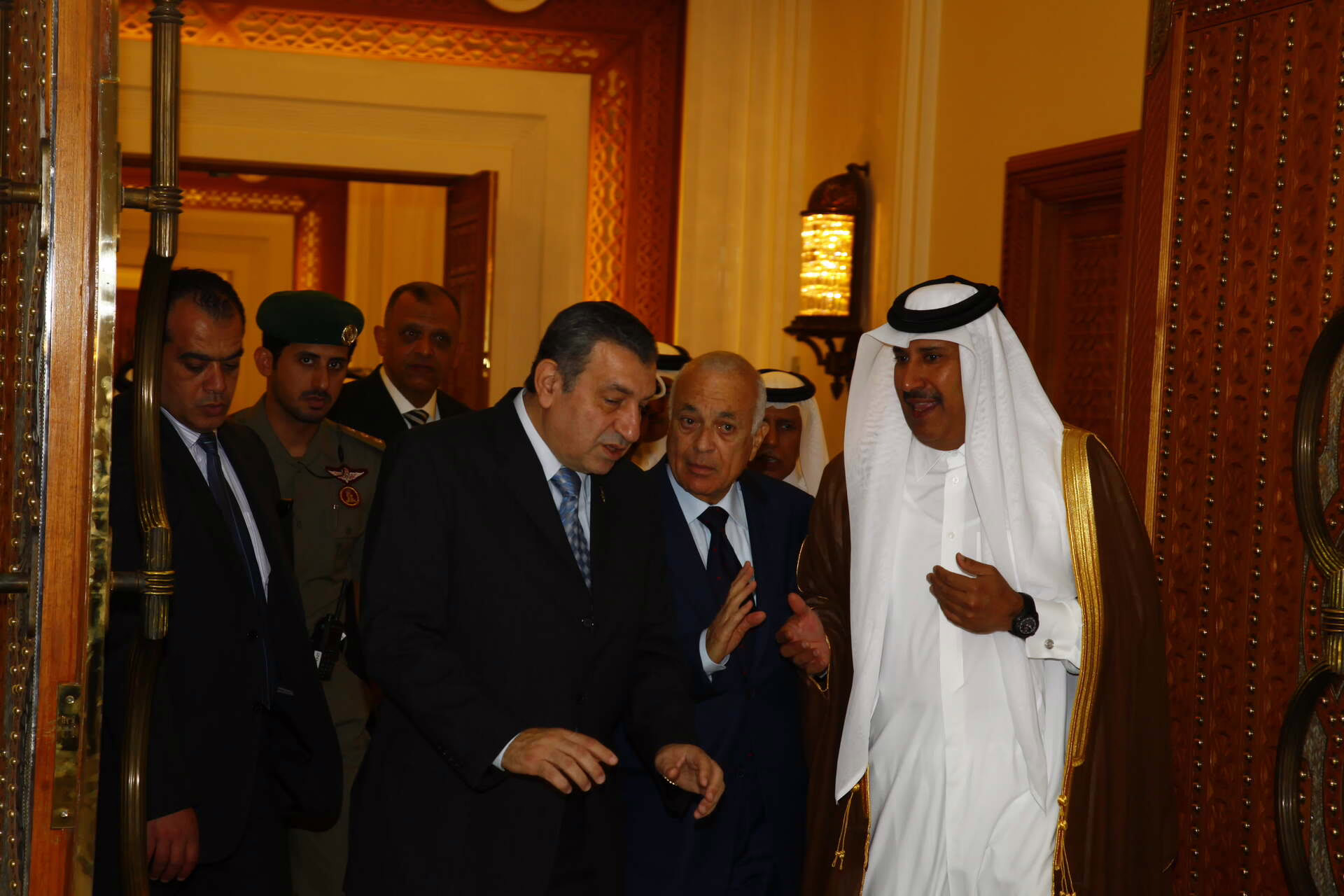 سمو ولي العهد الشيخ تميم بن حمد آل ثاني يستقبل في الدوحة بتاريخ 28 أبريل 2011 دولة رئيس مجلس الوزراء في جمهورية مصر العربية الدكتور عصام شرف، بحضور معالي رئيس مجلس الوزراء وزير الخارجية الشيخ حمد بن جاسم بن جبر آل ثاني، ومعالي وزير الدولة للشؤون الخارجية الشيخ أحمد بن عبد الله آل محمود، ومعالي وزير الخارجية المصري الدكتور نبيل العربي.