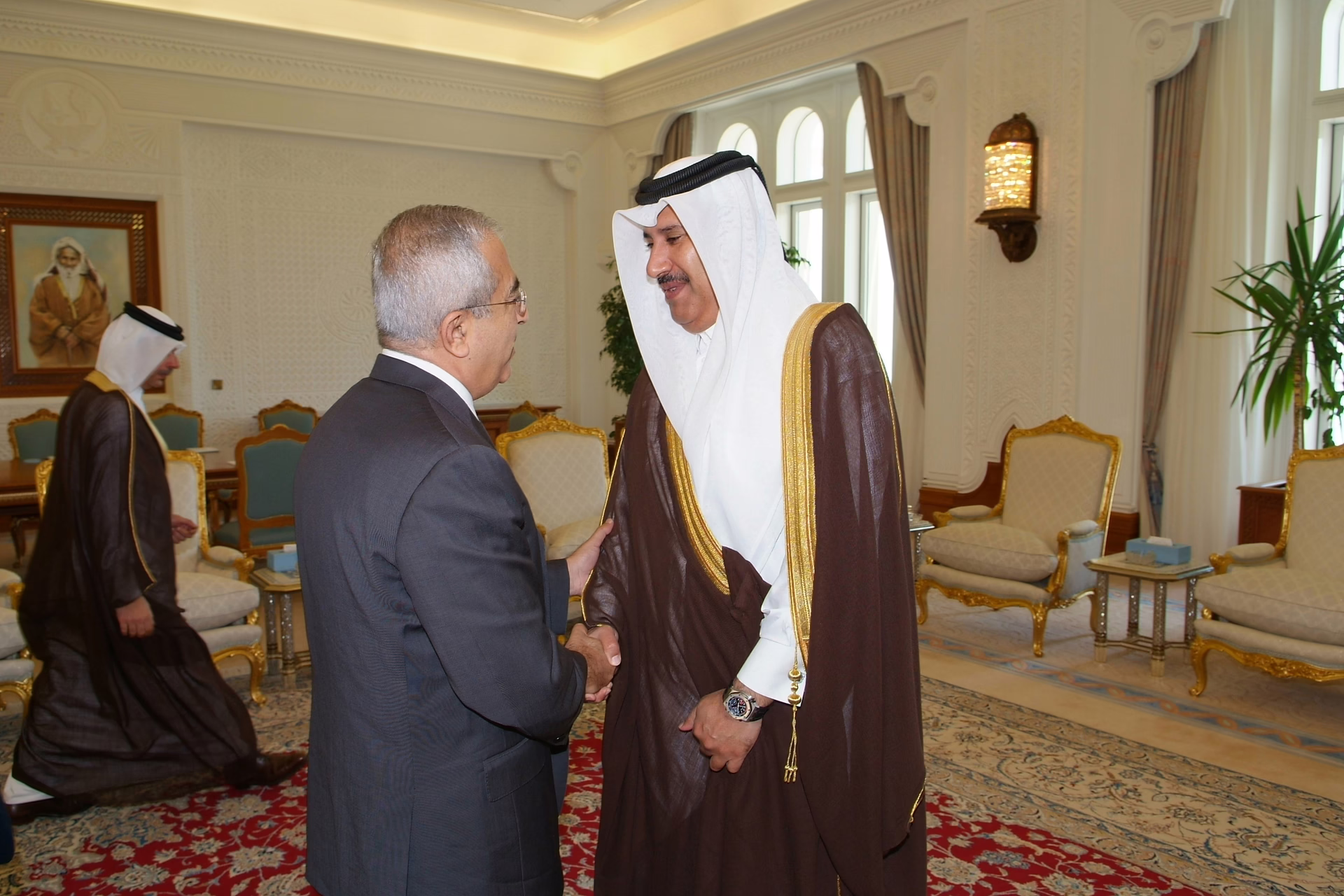 معالي رئيس مجلس الوزراء وزير الخارجية الشيخ حمد بن جاسم بن جبر آل ثاني يستقبل في الدوحة بتاريخ 13 مايو 2007 رئيس الوزراء في السلطة الوطنية الفلسطينية الدكتور سلام فياض.