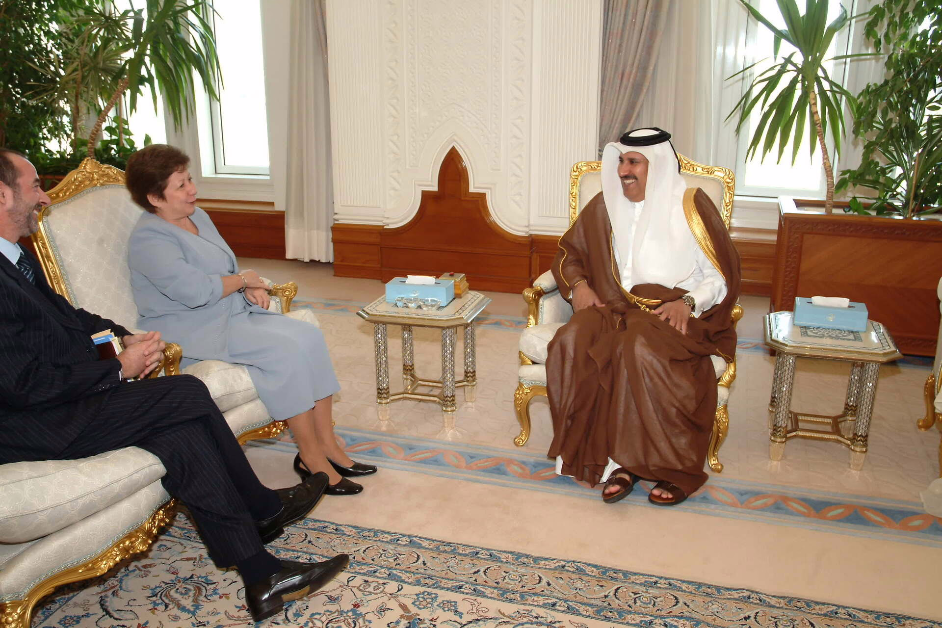 معالي النائب الأول لرئيس مجلس الوزراء وزير الخارجية الشيخ حمد بن جاسم بن جبر آل ثاني يستقبل في الدوحة بتاريخ 2 مايو 2005 معالي مارتا لوماس موريلياس وزيرة الاستثمار الأجنبي والتعاون الاقتصادي في جمهورية كوبا.