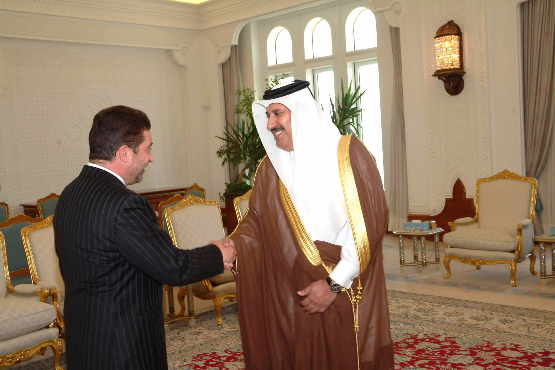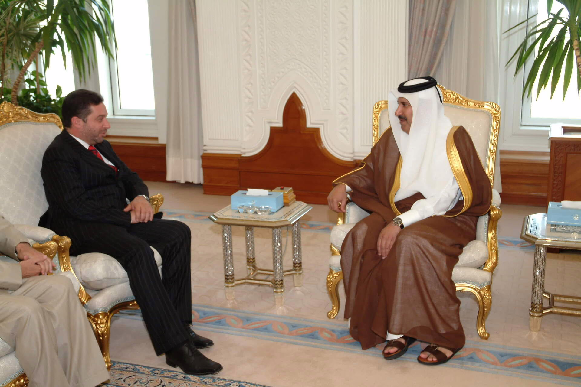 معالي النائب الأول لرئيس مجلس الوزراء وزير الخارجية الشيخ حمد بن جاسم بن جبر آل ثاني يستقبل في الدوحة بتاريخ 2 مايو 2005 معالي سردار دنكطاش نائب رئيس الوزراء وزير خارجية جمهورية شمال قبرص التركية.