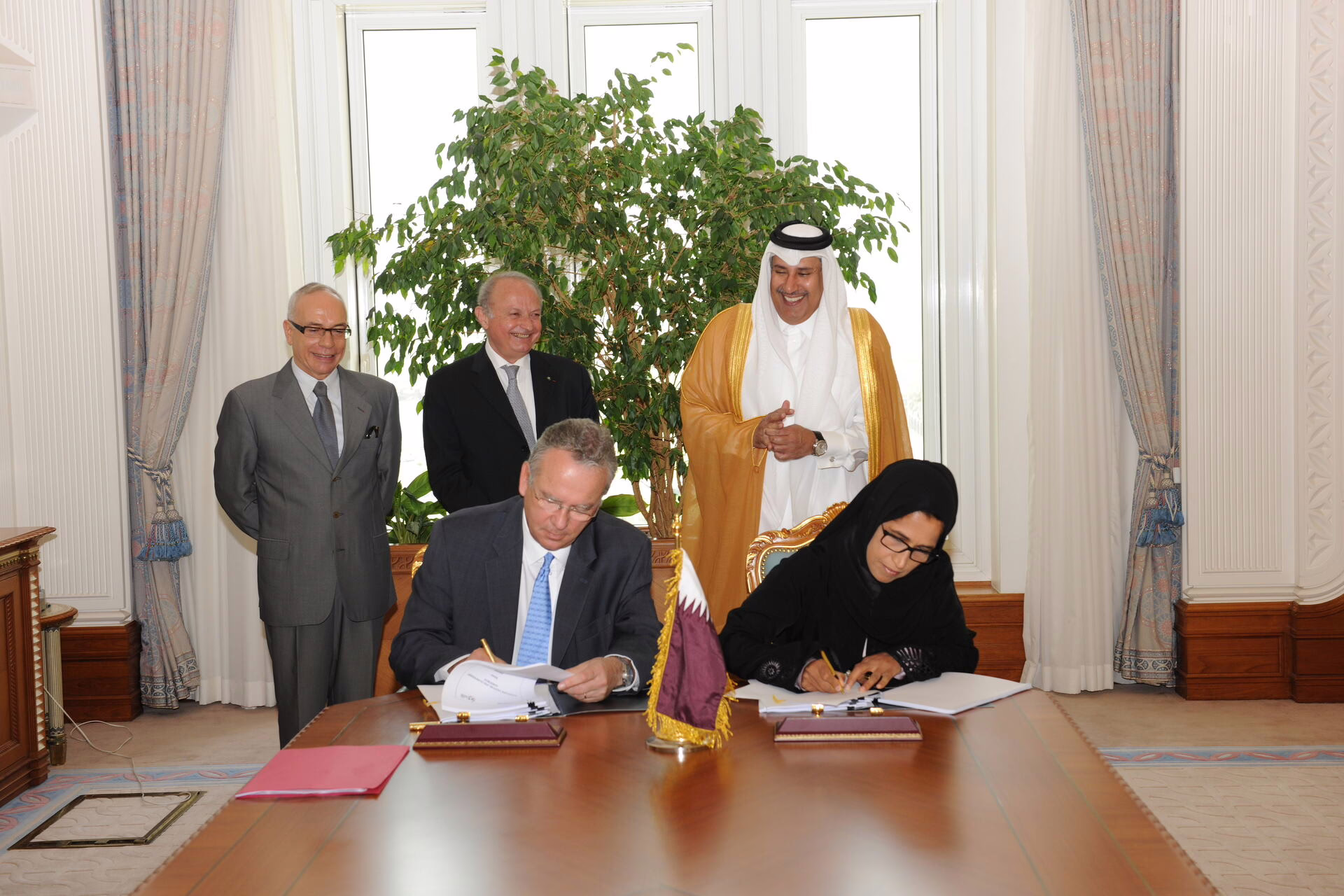 معالي رئيس مجلس الوزراء وزير الخارجية الشيخ حمد بن جاسم بن جبر آل ثاني يشهد توقيع اتفاقية شراكة استراتيجية مع شركة يوتلسات – 10 مايو 2010