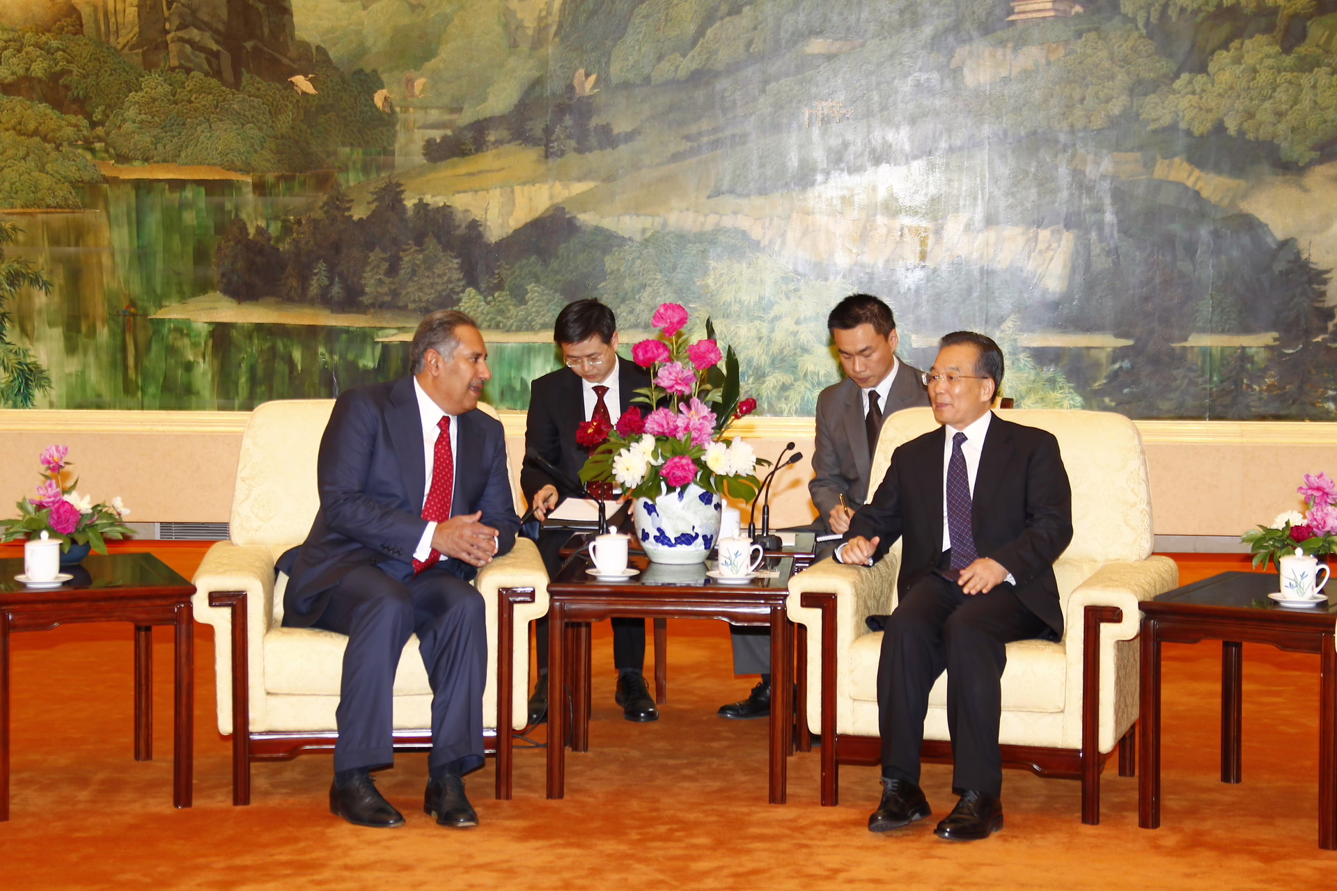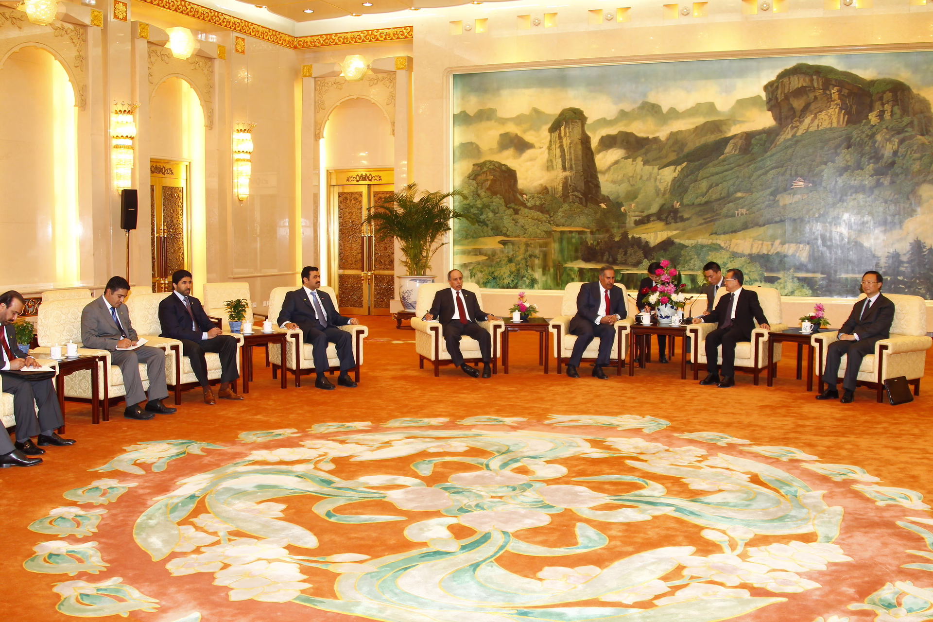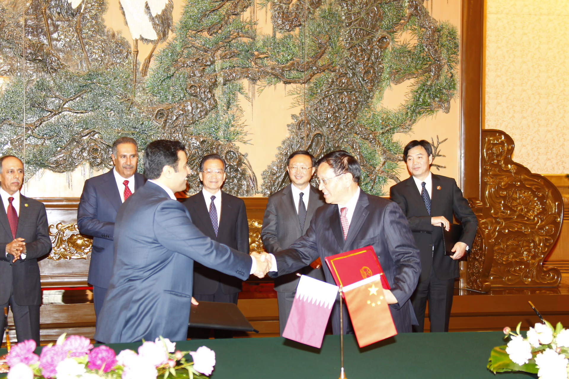معالي رئيس مجلس الوزراء وزير الخارجية الشيخ حمد بن جاسم بن جبر آل ثاني يشهد في العاصمة الصينية بكين بتاريخ 12 مايو 2010 مراسم توقيع اتفاقية شراكة استراتيجية بين دولة قطر وجمهورية الصين الشعبية، وذلك في إطار زيارته الرسمية إلى الصين. وقد حضر التوقيع رئيس مجلس الوزراء الصيني ون جيا باو.