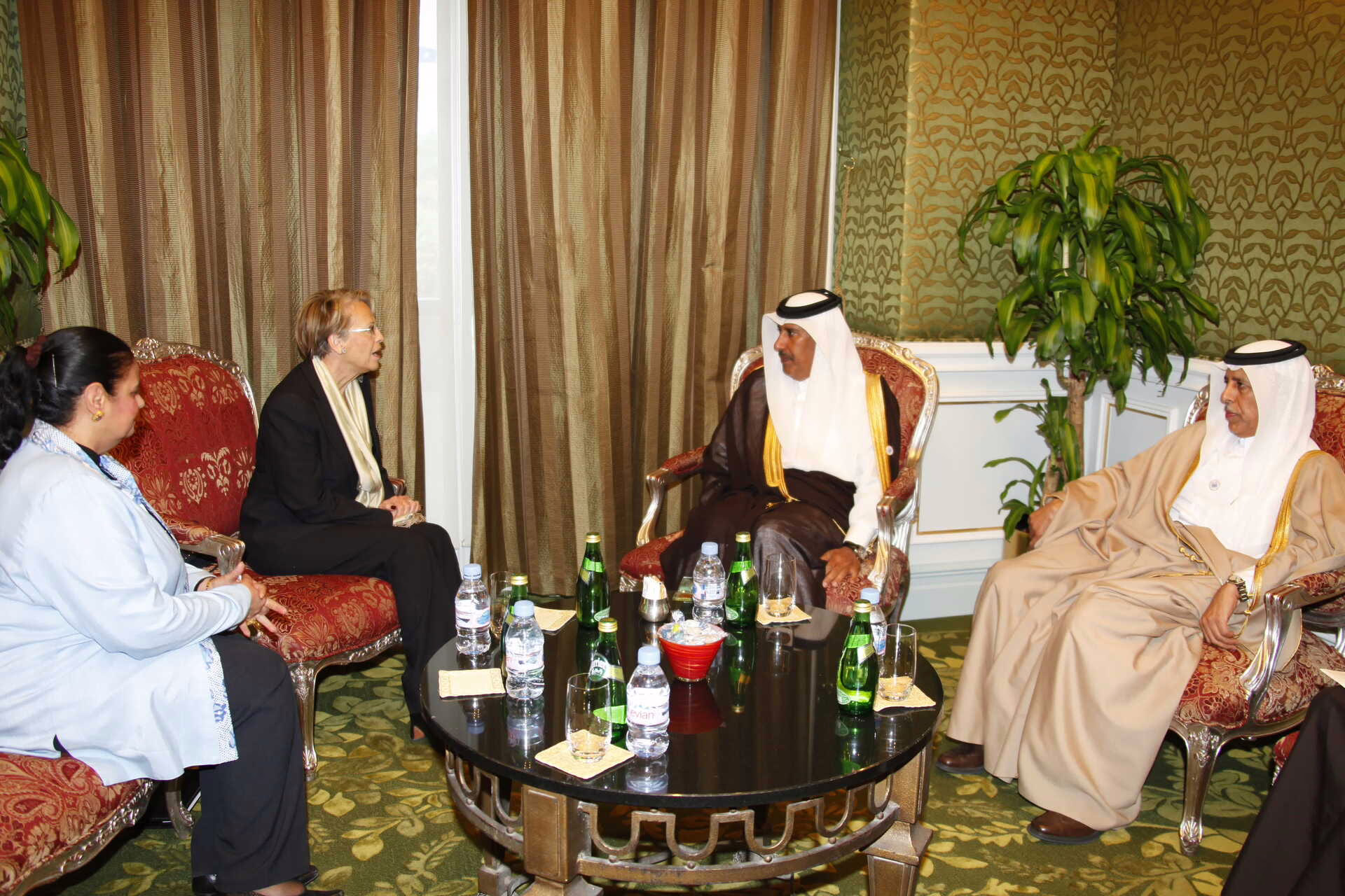 معالي رئيس مجلس الوزراء وزير الخارجية الشيخ حمد بن جاسم بن جبر آل ثاني يلتقي في الدوحة بتاريخ 13 يناير 2011 وزيرة الشؤون الخارجية في الجمهورية الفرنسية السيدة ميشال آليو ماري، وذلك على هامش أعمال منتدى المستقبل السابع لمجموعة الثمانية والشرق الأوسط وشمال أفريقيا.