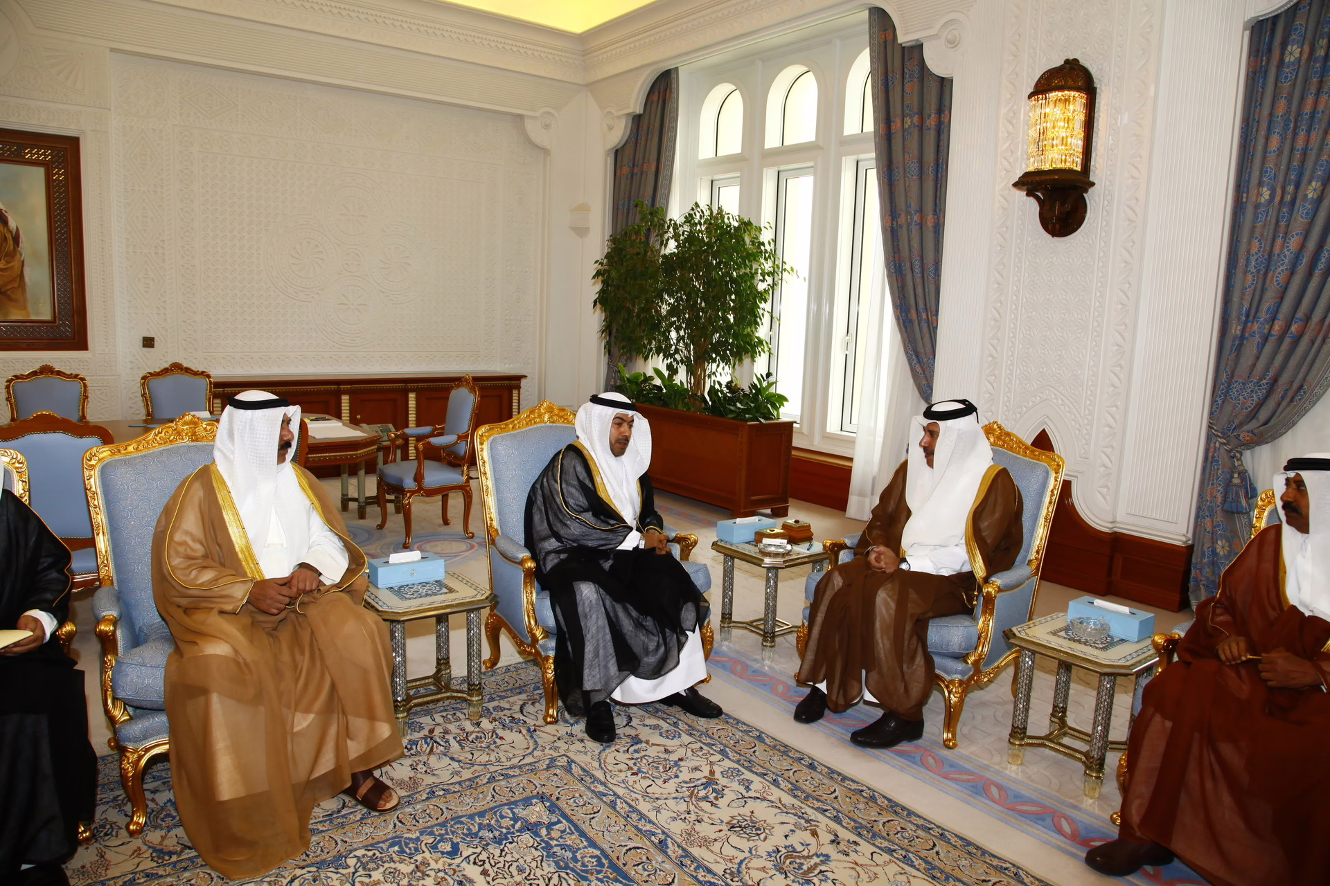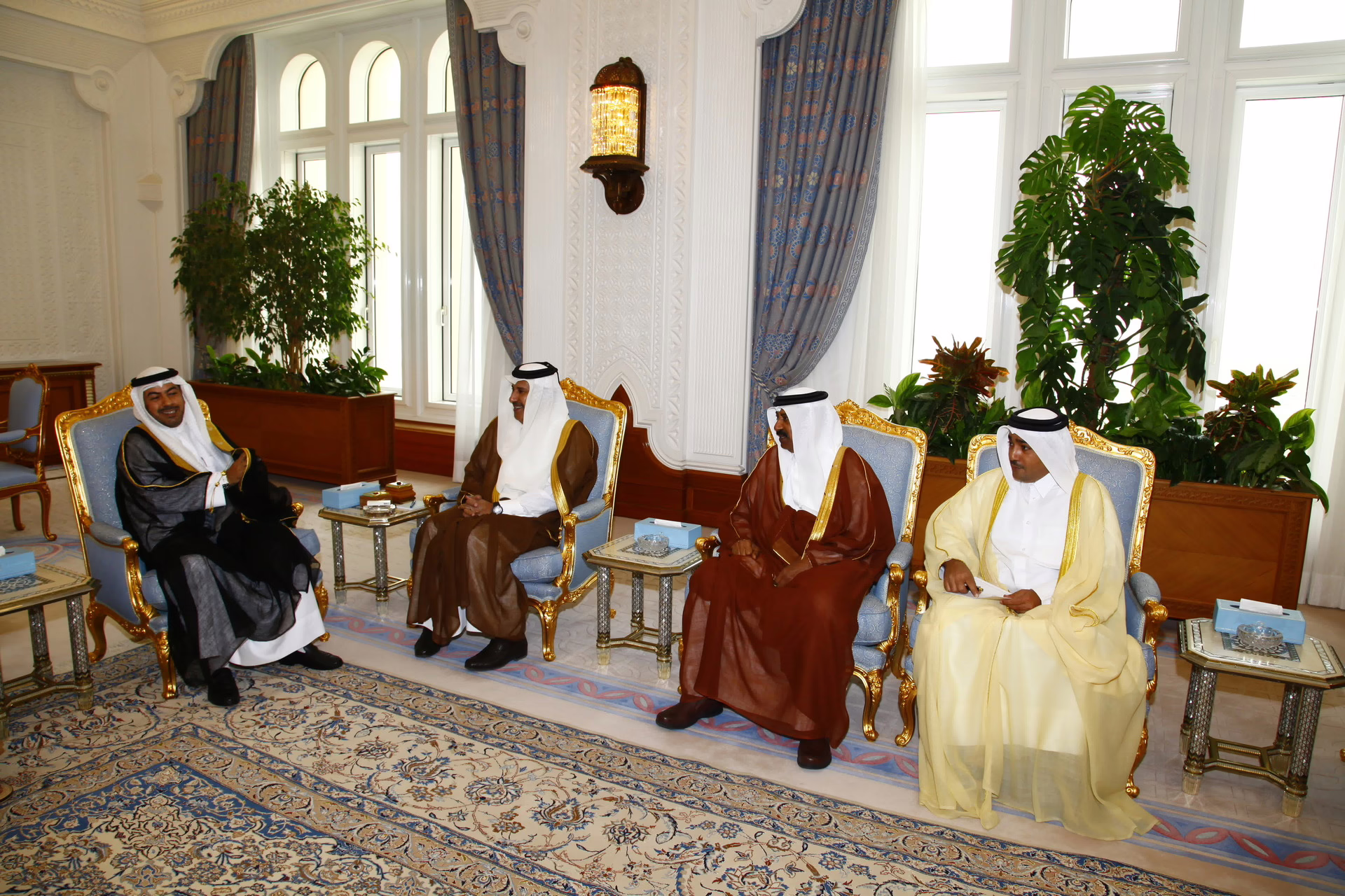 معالي رئيس مجلس الوزراء وزير الخارجية الشيخ حمد بن جاسم بن جبر آل ثاني يستقبل في الدوحة بتاريخ 11 أبريل 2011 رئيس البرلمان العربي السيد علي سالم الدقباسي، بحضور سعادة سفير دولة الكويت لدى دولة قطر سليمان الهيفي.