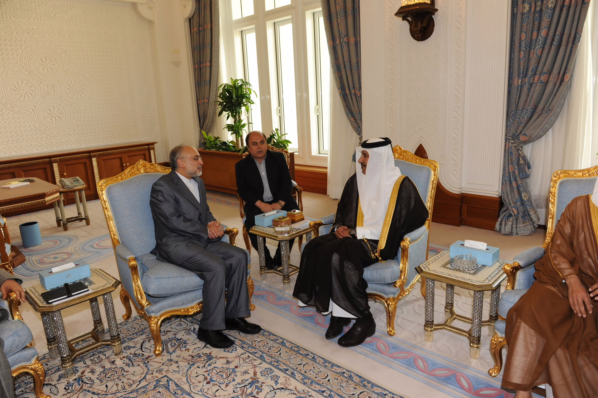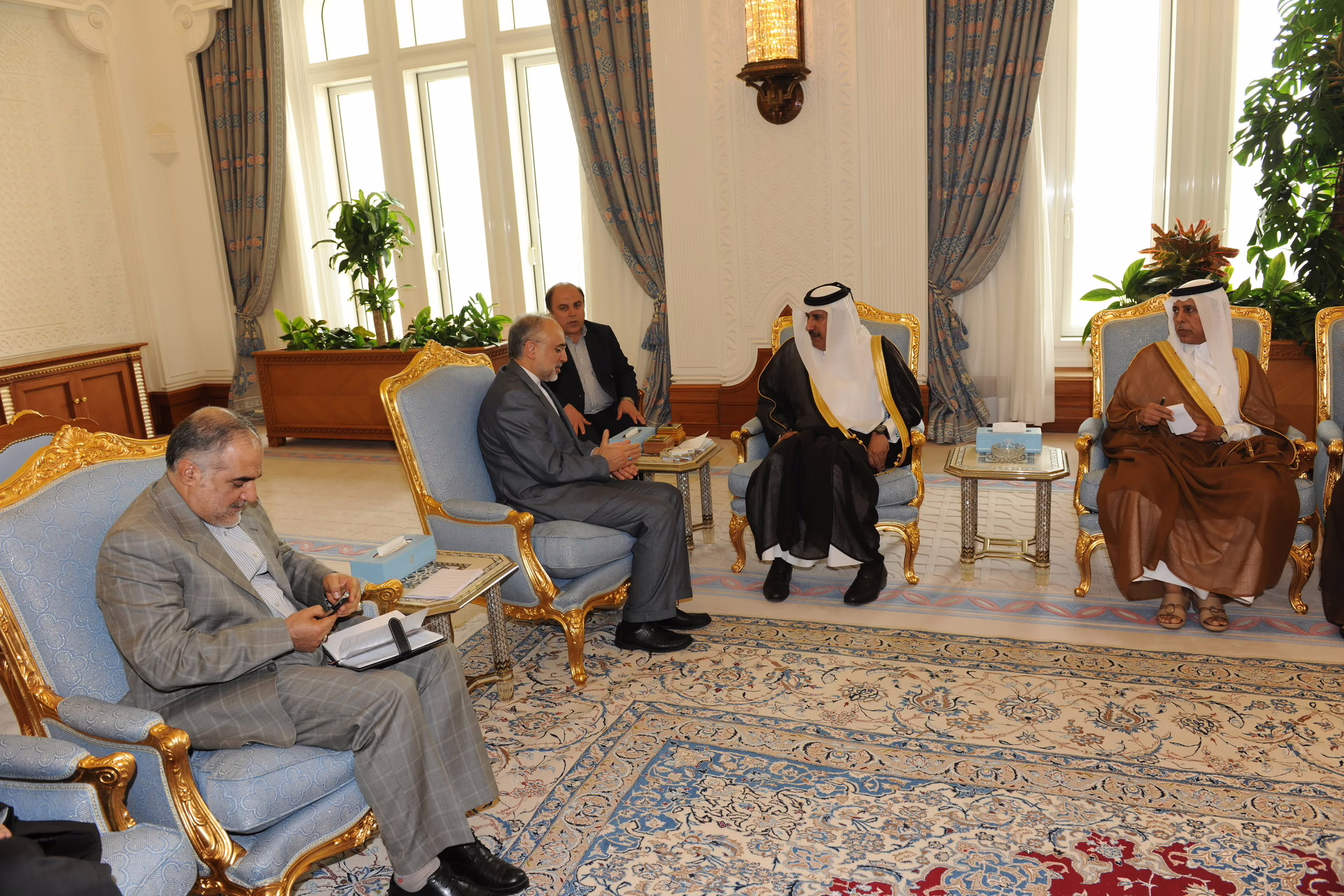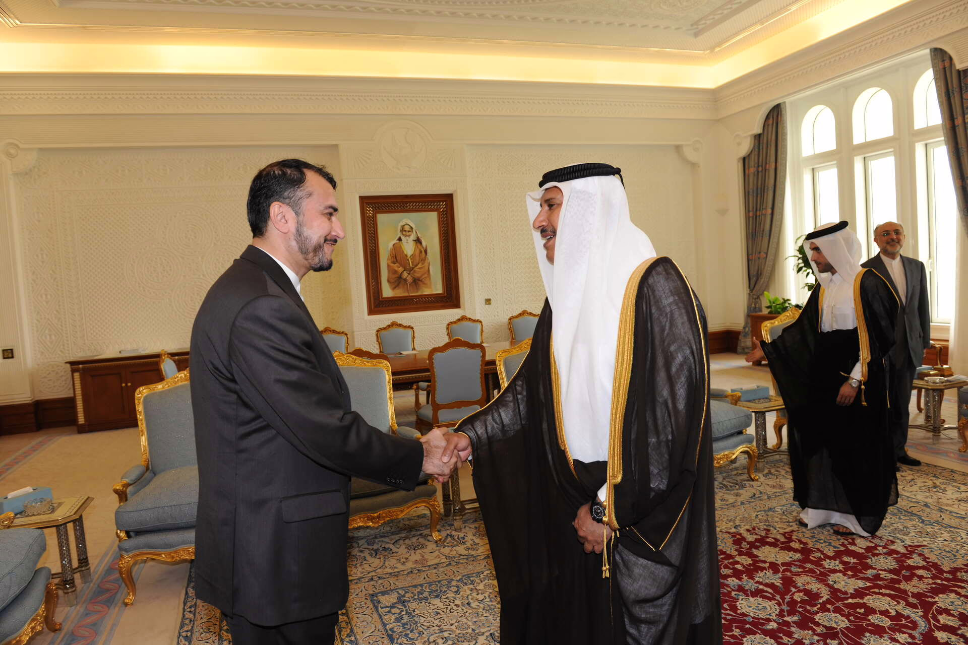 معالي رئيس مجلس الوزراء وزير الخارجية الشيخ حمد بن جاسم بن جبر آل ثاني يستقبل في الدوحة بتاريخ 2 مايو 2011 معالي وزير الخارجية في الجمهورية الإسلامية الإيرانية الدكتور علي أكبر صالحي، بحضور معالي وزير الدولة للشؤون الخارجية الشيخ أحمد بن عبد الله آل محمود، وسعادة حسين أمير عبد اللهيان.