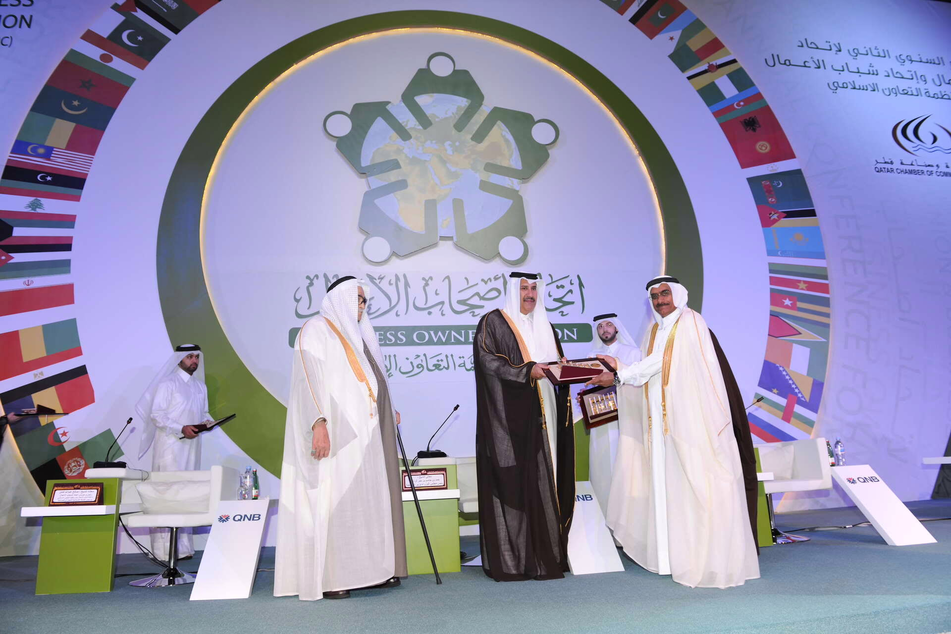 معالي رئيس مجلس الوزراء وزير الخارجية الشيخ حمد بن جاسم بن جبر آل ثاني يفتتح في الدوحة بتاريخ 4 ديسمبر 2011 فعاليات مؤتمر اتحاد أصحاب الأعمال بدول منظمة التعاون الإسلامي، بحضور الشيخ صالح كامل رئيس اتحاد غرف دول مجلس التعاون، وسعادة الدكتور أحمد محمد علي المدني رئيس مجموعة البنك الإسلامي للتنمية، وصاحب السمو الملكي الأمير الوليد بن طلال بن عبد العزيز آل سعود، وعدد من كبار المسؤولين ورجال الأعمال.