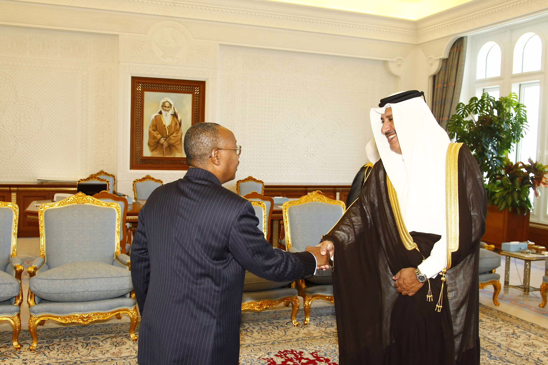 معالي رئيس مجلس الوزراء وزير الخارجية الشيخ حمد بن جاسم بن جبر آل ثاني يستقبل في الدوحة بتاريخ 5 فبراير 2013 سعادة طاهر النظيف خاطر سفير جمهورية تشاد لدى دولة قطر.