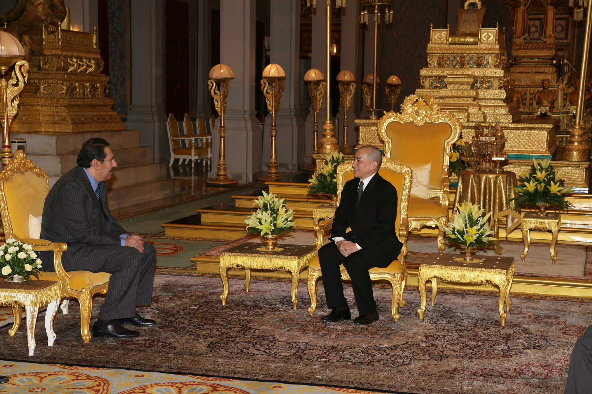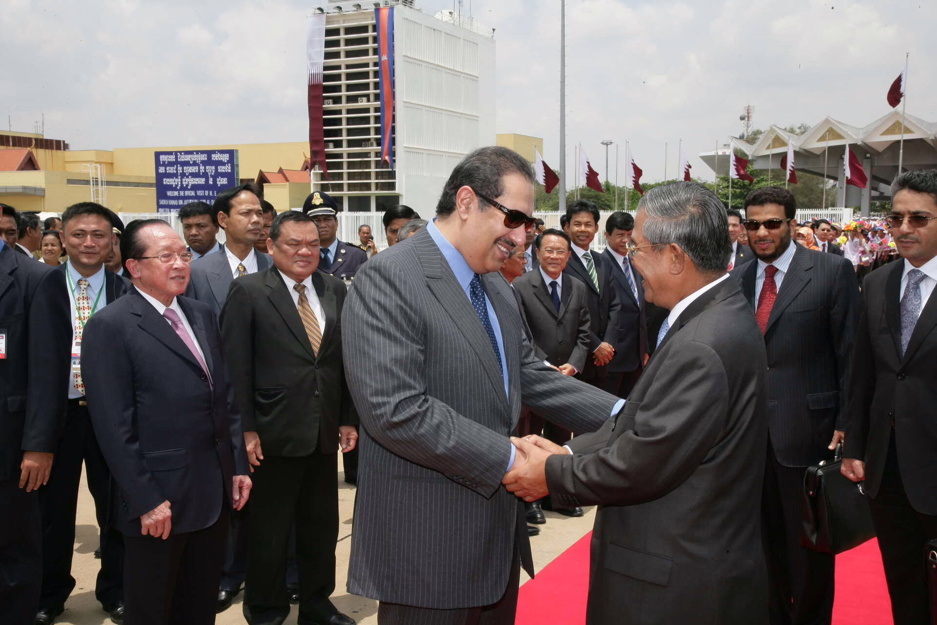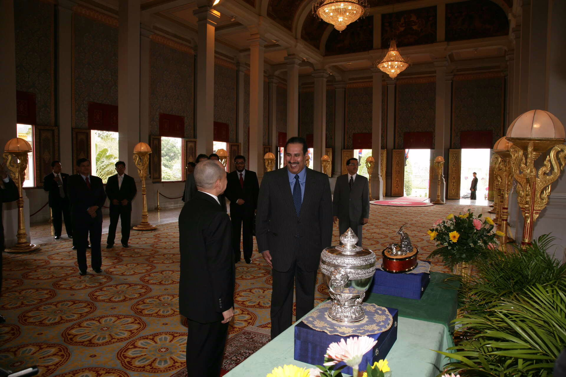 معالي رئيس مجلس الوزراء وزير الخارجية الشيخ حمد بن جاسم بن جبر آل ثاني يلتقي في بنوم بنه بتاريخ 2 أبريل 2008 جلالة الملك نوردوم سيهاموني ملك مملكة كمبوديا، في حضور دولة هون سين رئيس وزراء مملكة كمبوديا، وبرفقة عدد من كبار المسؤولين، وذلك في ختام زيارته إلى مملكة كمبوديا.