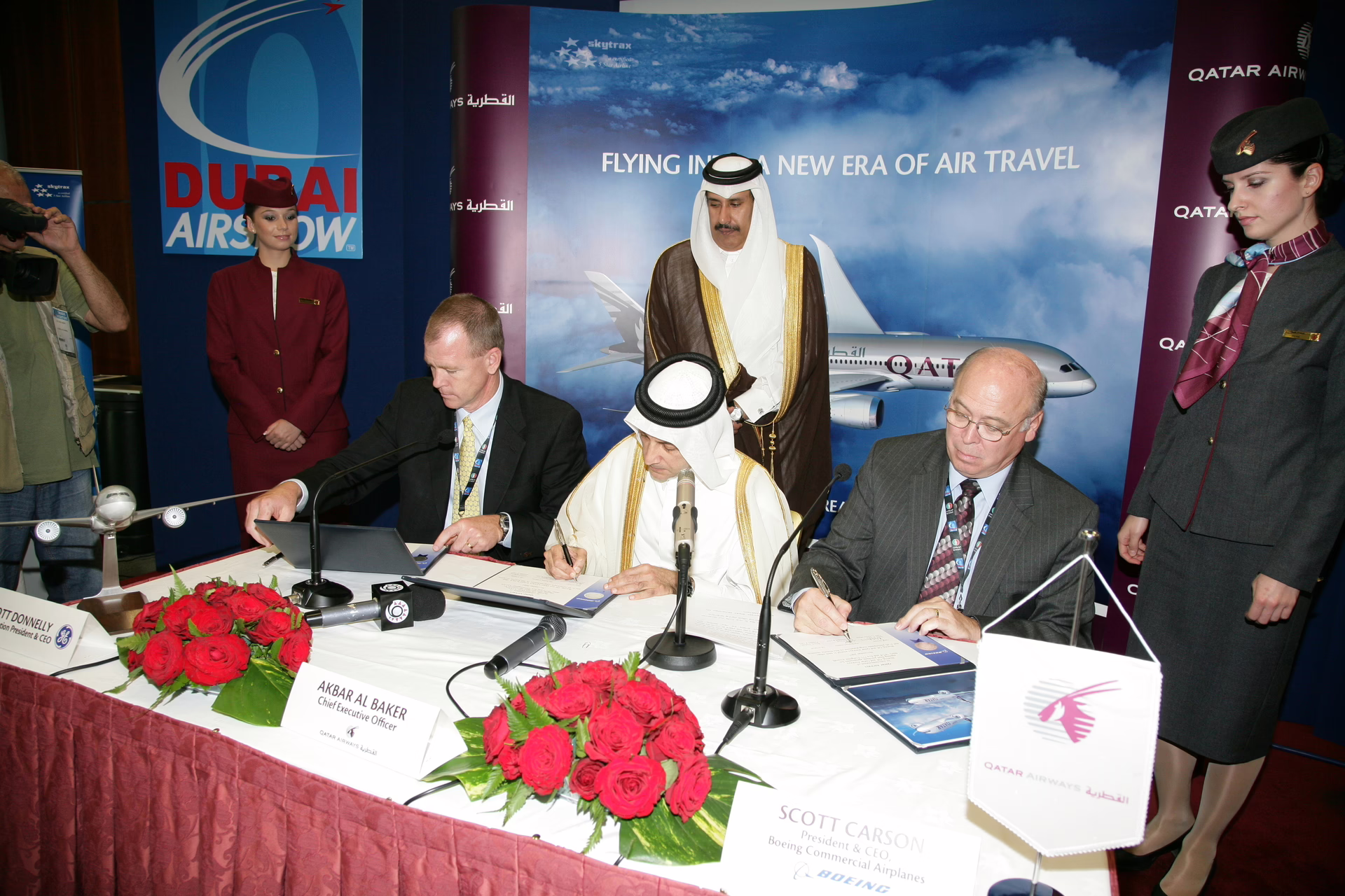 معالي رئيس مجلس الوزراء وزير الخارجية الشيخ حمد بن جاسم بن جبر آل ثاني خلال زيارته لمعرض دبي الدولي للطيران في دورته لعام 2007، بتاريخ 11 نوفمبر، حيث التقى بعدد من المسؤولين الإماراتيين من بينهم سمو الشيخ محمد بن راشد آل مكتوم، وسمو الشيخ منصور بن زايد آل نهيان، ومعالي الشيخ عبد الله بن زايد وزير الخارجية الإماراتي، كما حضر اللقاء سعادة السيد أكبر الباكر الرئيس التنفيذي للخطوط الجوية القطرية، وعدد من كبار المسؤولين، وقد شهد معالي الشيخ حمد بن جاسم توقيع عدد من الاتفاقيات.