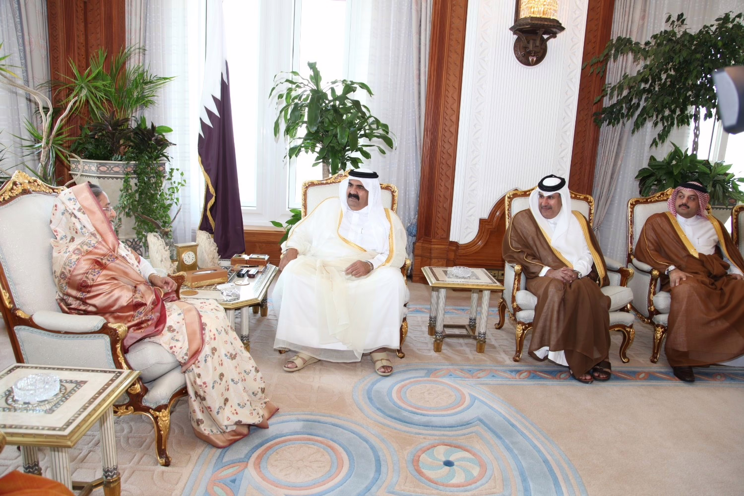 سمو الأمير الشيخ حمد بن خليفة آل ثاني يستقبل في الدوحة بتاريخ 26 أكتوبر 2009 دولة رئيسة وزراء بنغلاديش الشيخة حسينة واجد، وذلك بحضور معالي رئيس مجلس الوزراء وزير الخارجية الشيخ حمد بن جاسم بن جبر آل ثاني، وسعادة وزيرة الخارجية البنغالية ديفو موني، ومعالي وزير الدولة لشؤون البيئة البنغالي حسن محمود، وعدد من المسؤولين القطريين.