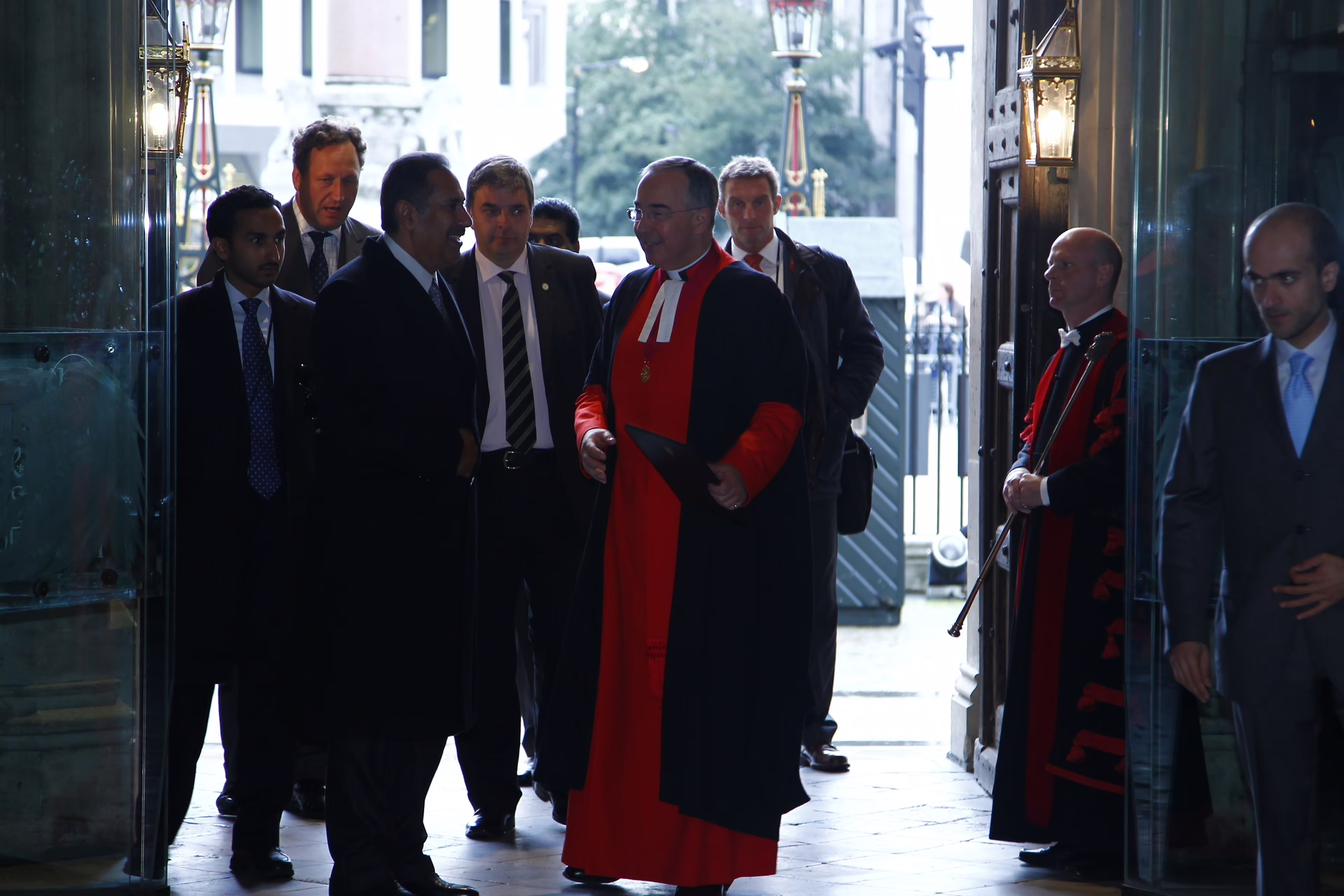 سمو الأمير الشيخ حمد بن خليفة آل ثاني يزور كنيسة وستمنستر في مدينة لندن بتاريخ 27 أكتوبر 2010، برفقة سمو الشيخة موزا بنت ناصر المسند، ومعالي رئيس مجلس الوزراء وزير الخارجية الشيخ حمد بن جاسم بن جبر آل ثاني، وسمو الشيخة هند بنت حمد آل ثاني، حيث التقى عميد الكنيسة الدكتور جون هول. وحضر اللقاء وفد رسمي رفيع المستوى من كبار المسؤولين.