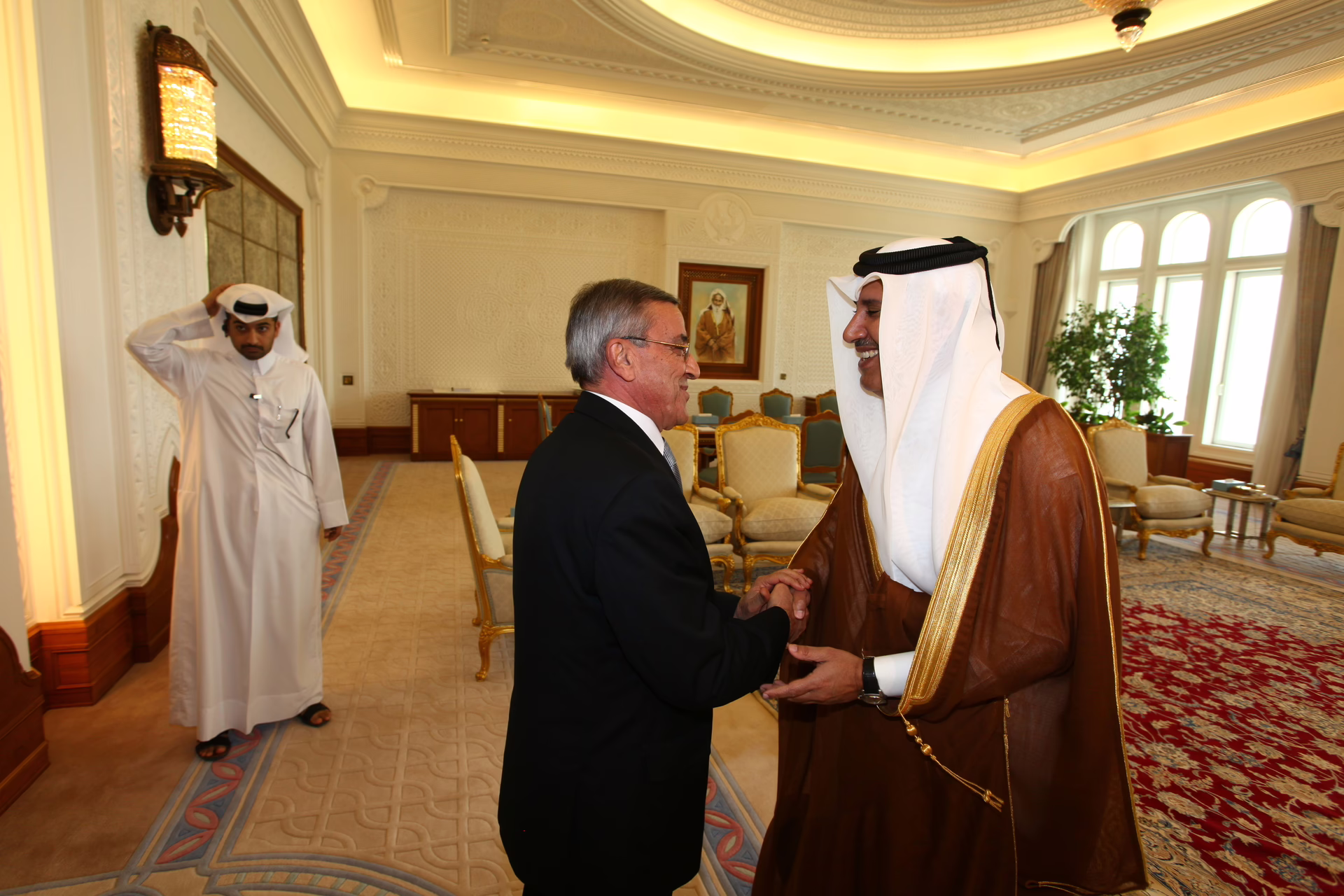 معالي رئيس مجلس الوزراء وزير الخارجية الشيخ حمد بن جاسم بن جبر آل ثاني يستقبل في الدوحة بتاريخ 17 مايو 2010 معالي وزير الخارجية اللبناني الدكتور علي الشامي.